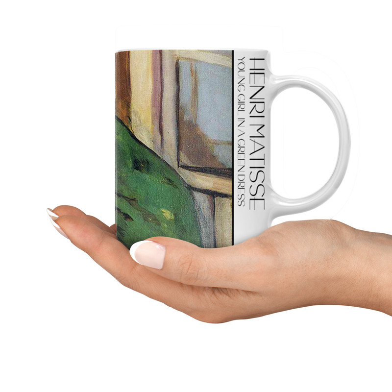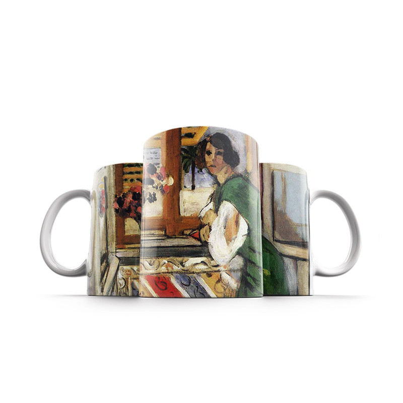 طرح ماگ دختر جوان با لباس سبز از ماتیس