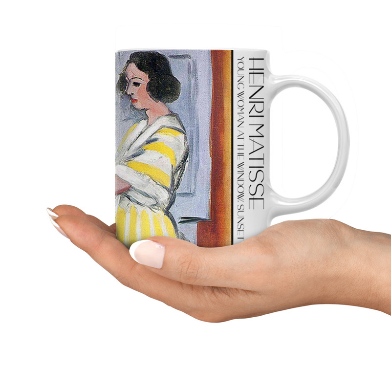| طرح ماگ | زن جوان پشت پنجره، غروب آفتاب از ماتیس |