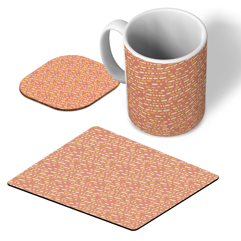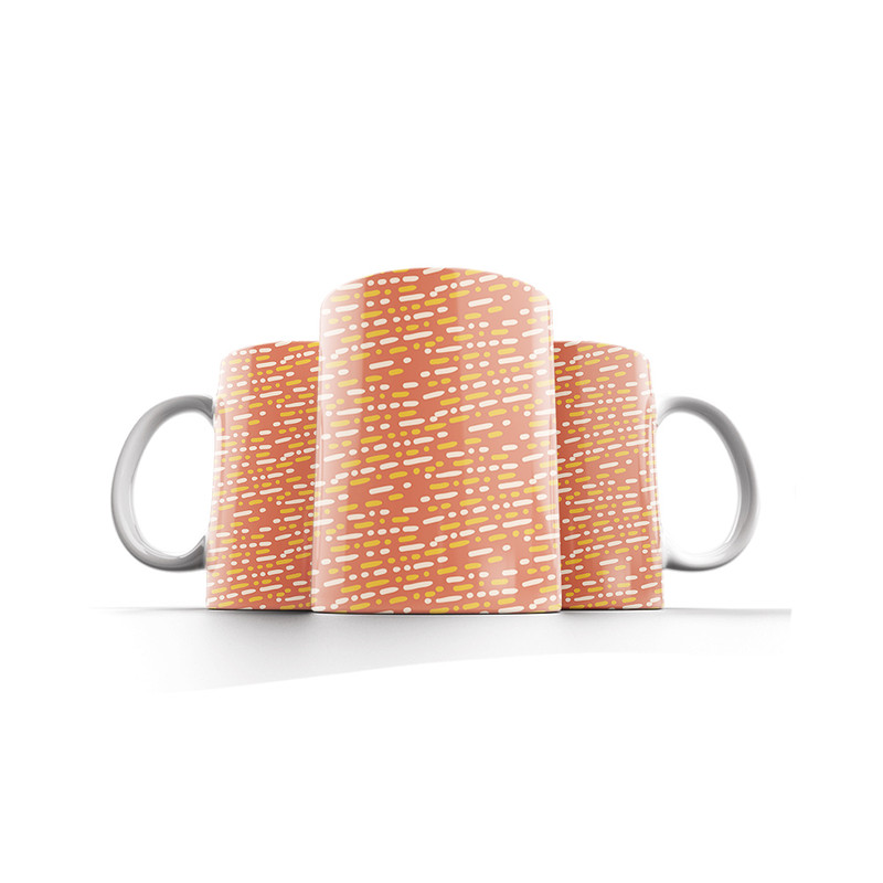 ماگ ترمه طراحان ایده مدل پترن خط های کرم و زرد کد strm0062 همراه با زیر لیوانی و موس پد