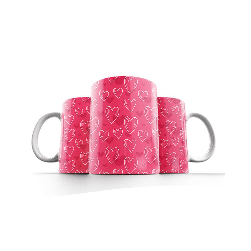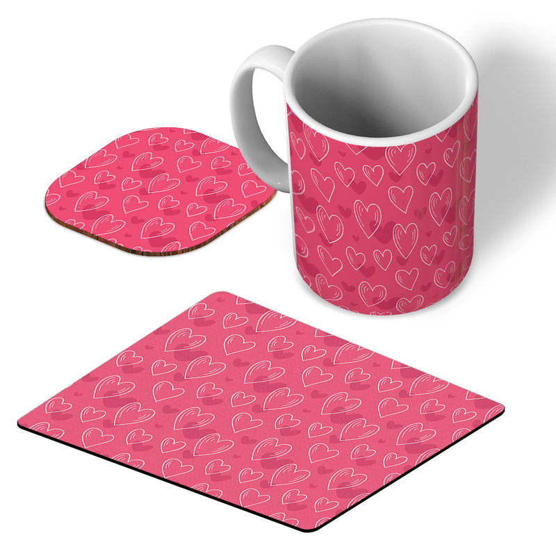ماگ ترمه طراحان ایده مدل پترن قلب سفید و قرمز کد strm0078 همراه با زیر لیوانی و موس پد