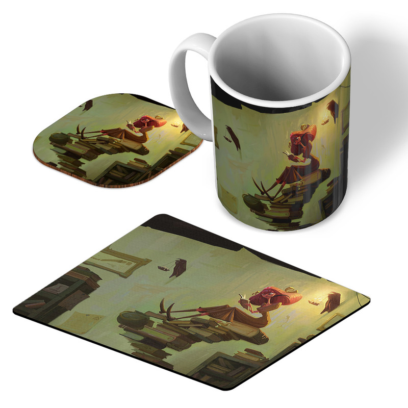 ماگ ترمه طراحان ایده مدل پله های کتابی کد cfp1710 همراه با زیر لیوانی و موس پد