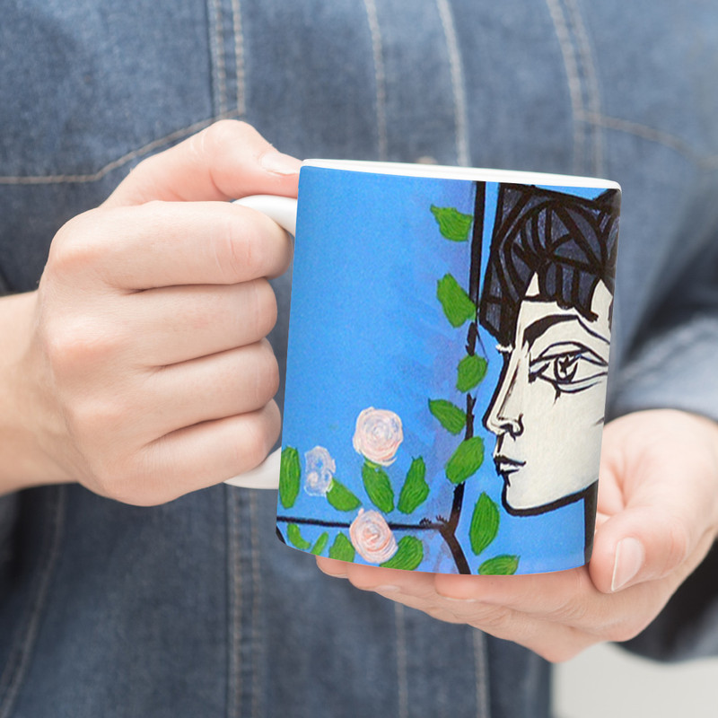 طرح ماگ ژاکلین و گل ها از پیکاسو