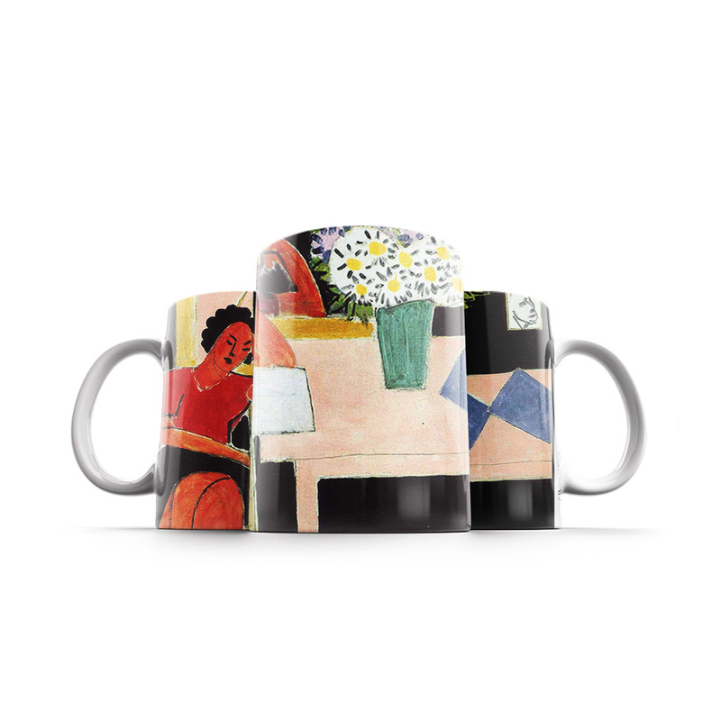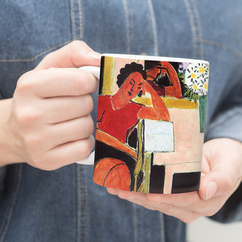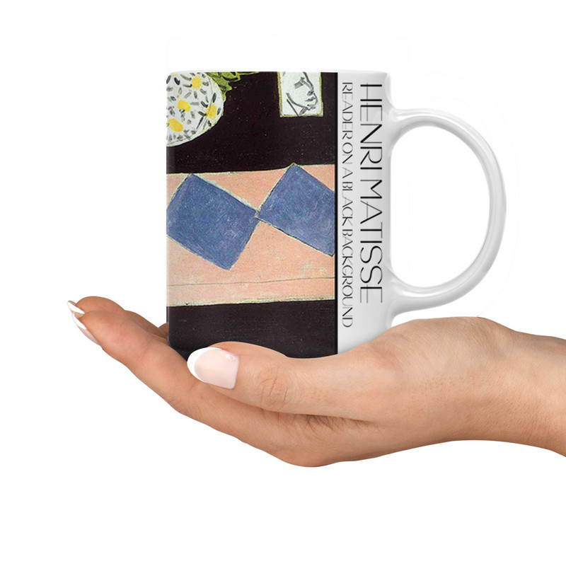طرح ماگکتابخوان جلوی پس زمینه مشکی از ماتیس