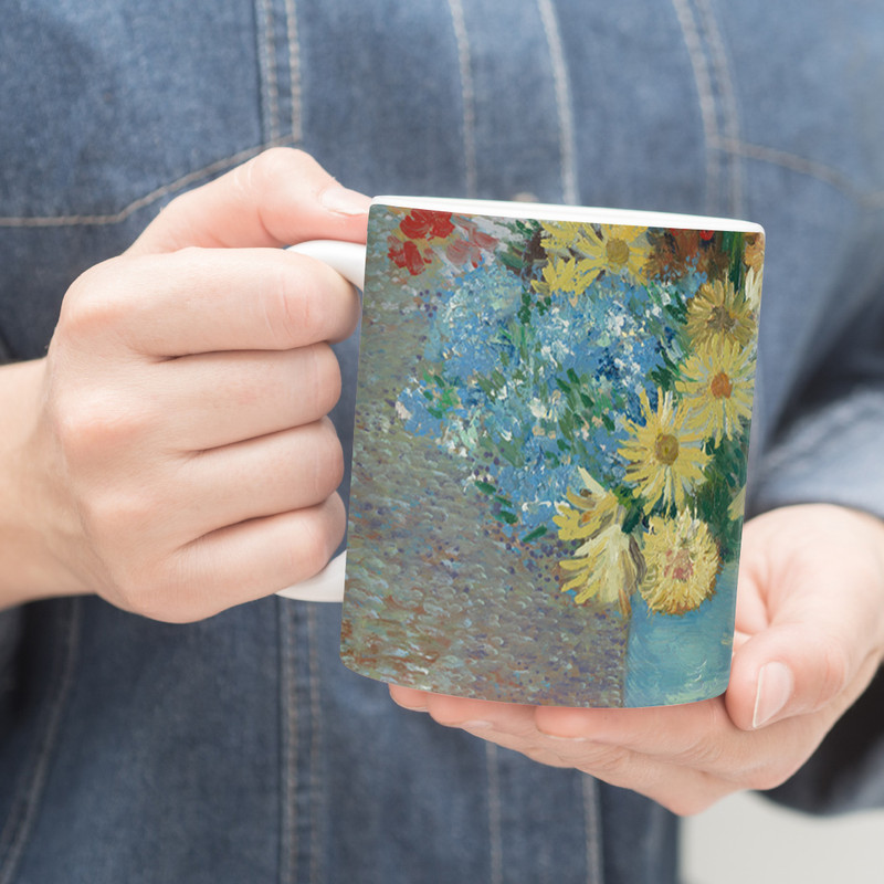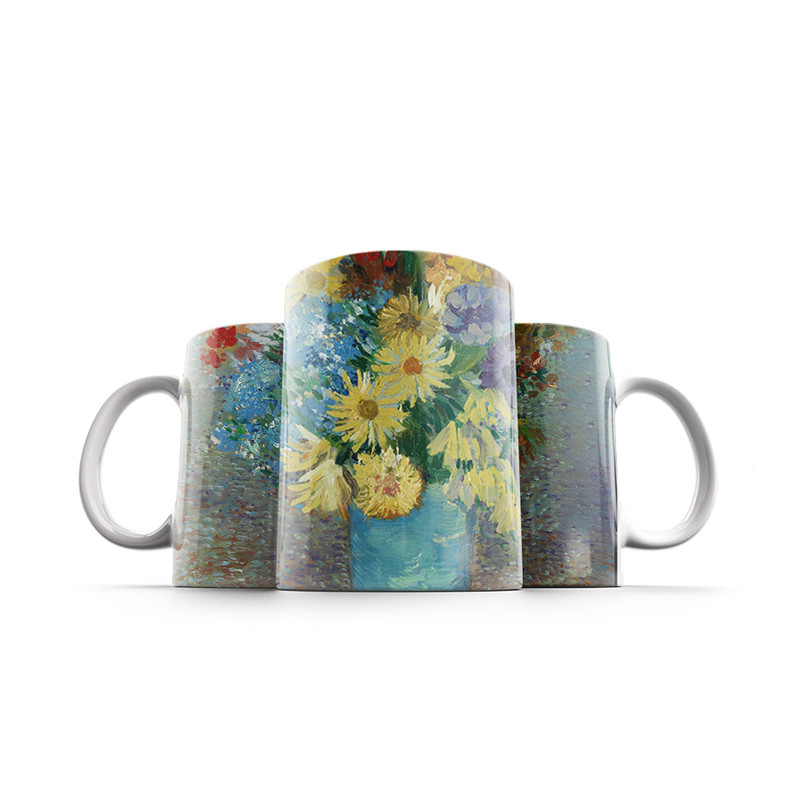 ماگ ترمه طراحان ایده مدل گل ها در گلدان آبی از ونگوگ کد art0062