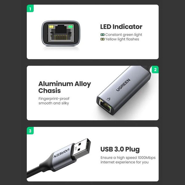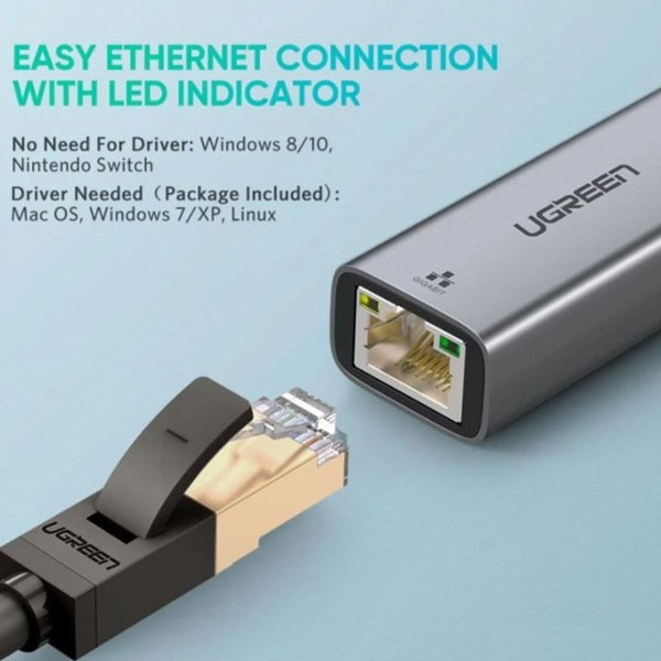 با مبدل USB به Ethernet «یوگرین» (UGREEN CM209-50922) که دارای کابل USB3.0 متصل به خود است، اطلاعات را با سرعت بالایی انتقال دهید. این مبدل به شما این امکان را میدهد که کابل LAN را به ورودی USB کامپیوتر خود وصل کنید. این مبدل برای لپتاپ و سیستمهای فاقد درگاه LAN بهصورت اکسترنال استفاده میشود.
