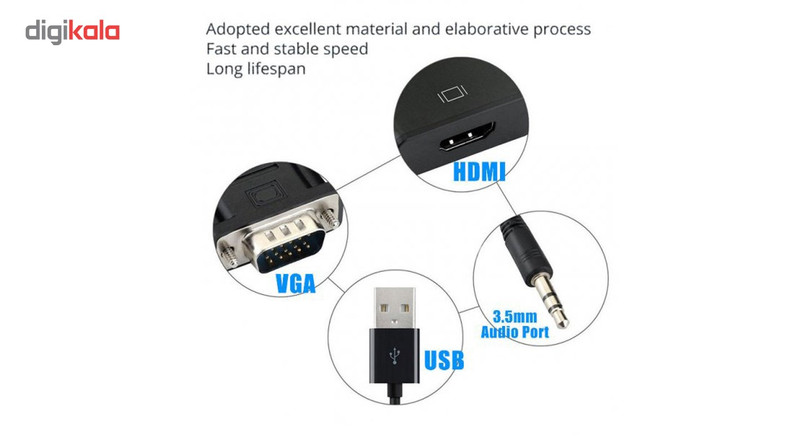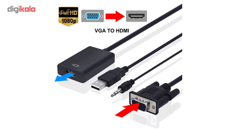 سایر توضیحات | مبدل VGA نری به HDMI مادگی تبدیل کننده پورت VGA کامپیوتر و نوت بوک و سایر دستگاه های پخش کننده به پورت HDMI رزولیشن تصویر تا 1920*1080 کابل میکرو یو اس بی جهت تامین برق کابل AUX صدا جهت انتقال صدا بدون نیاز به نصب و راه اندازی |