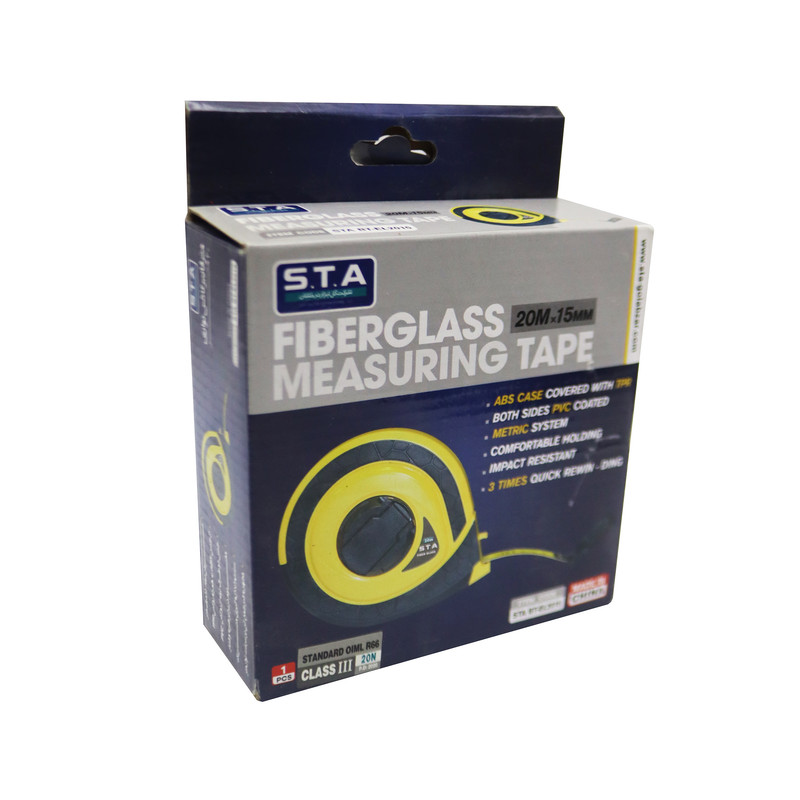 سایر توضیحات- متر 20 متری اس تی ای - متر فایبر گلاس نواری - عرض تیغه : 15 میلی متر - از جنس ABS به همراه روکش - جنس دو طرفه تیغه از روکش PVC - سیستم اندازه گیری متریک - مقاوم در برابر ضربه - مجهز به نوار جمع کننده پر سرعت نوارمتر - مقاوم در برابر ضربه و فشار - کیفیت بالا
