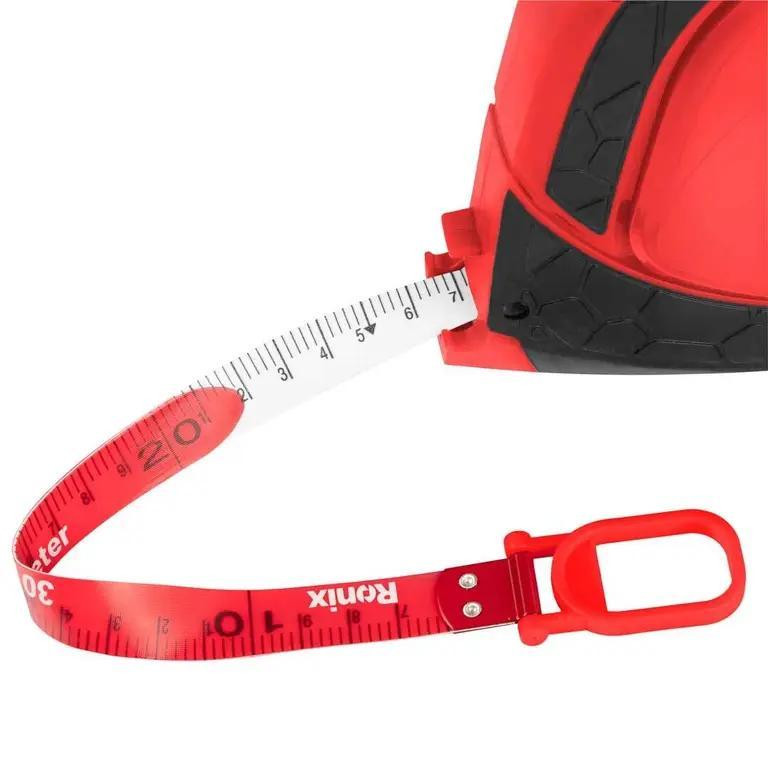 متر فایبرگلاس رونیکس مدل RH-9803 طول 30 متر برخوردار از جنس بدنه فایبر گلاس که باعث کم شدن چشم گیر وزن آن شده است. واحد اندازهگیری طول در این محصول برحسب سانتی متر اندازه گیری می شود. همچنین متر فایبرگلاس رونیکس دارای بدنه ضد ضربه است.