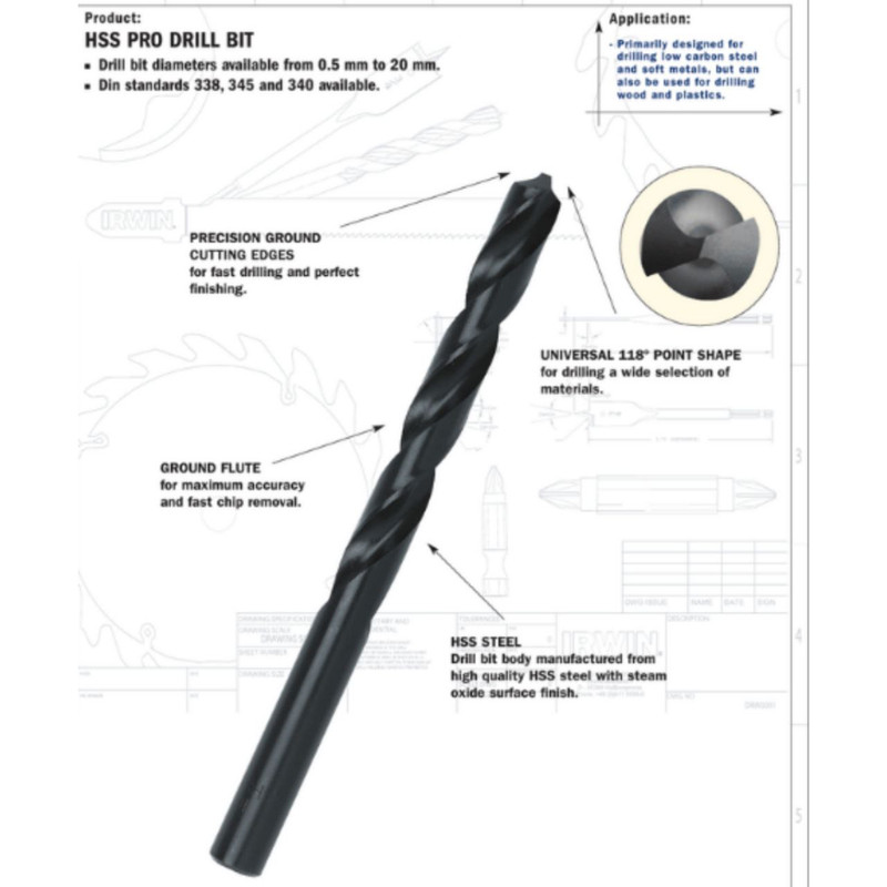 سه عدد مته آهن اروین HSS Pro سایز 4.5 میلیمتر است و محصول کشور آلمان میباشد. این مته ها برای کاربرهای حرفه ای است و با عملکرد فوق العاده و عمر طولانی میباشد. و برای حفاری فولاد و فولاد ریخته گری ، فولاد آلیاژی و غیر آلیاژی ، چدن ، فلزات غیر آهنی ، پلاستیک و سایر مواد ساخته شده است. نقطه 118 درجه با مورب متقاطع آنها مرکز دهی مطلوب هنگام حفاری و سرعت حفاری بالاتر را ارائه می دهد. همینطور مته پیچشی اروین HSS Pro نسبت به مته استاندارد HSS با آسیاب سطح مخروطی به فشار حفاری کمتری نیاز دارد. و به دلیل خاصیت ارتجاعی بالا هنگام حفاری با قطر کمتر خطر شکستگی مته فوق العاده کاهش می یابد. جنس مته از فولاد پرسرعت و با بالاترین کیفیت است و با استاندارد اروپا (DIN338) تولید شده است.