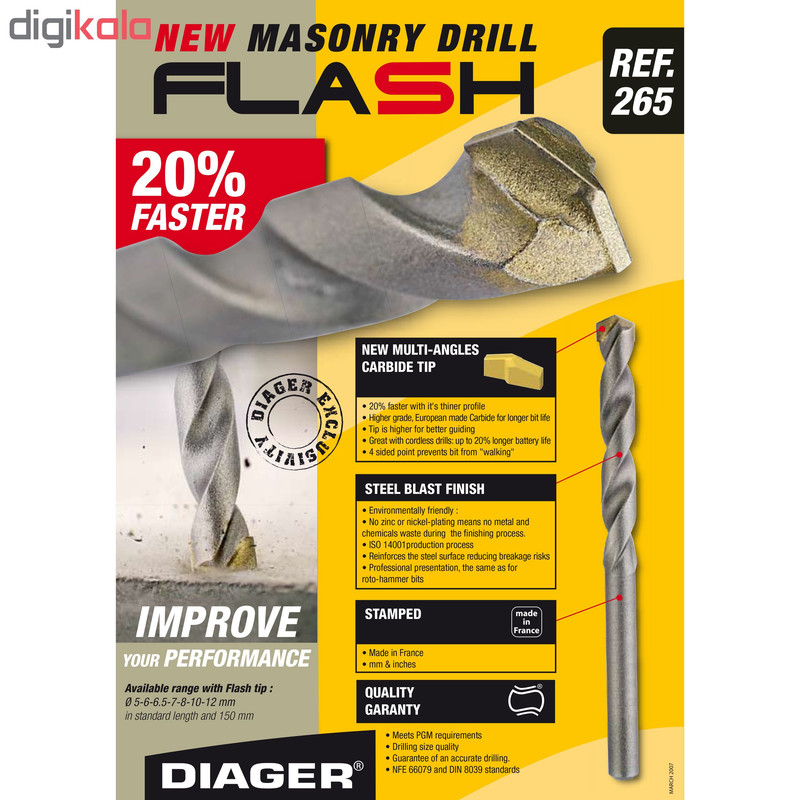 اگر از مته های چینی با کیفیت پایین خسته شده اید و دنبال یک مته اروپایی مطمعن میگردید ، مته های دیاجر فرانسه راه حل خوبی برای خلاصی شماست. شرکت دیاجر فرانسه به صورت تخصصی بر روی مته های مخصوص دیوار ، بتن ، راه سازی ، معدنکاری ، ... و نظایر آنها تمرکز کرده و برای هر رده کاری ،بهترین ها را در اختیار کاربر قرار میدهد. مته های نوع مسنری (MASONRY) هم از نوع مته های الماسه مخصوص سوراخ کاری بر روی دیوار ، بلوک ساختمانی سبک ، آجر و کلا برای کارهای ساختمانی بوده و با کیفیت بالای خود در درازمدت باعث کاهش هزینه و افزایش راندمان کاری برای کاربر میگردد.