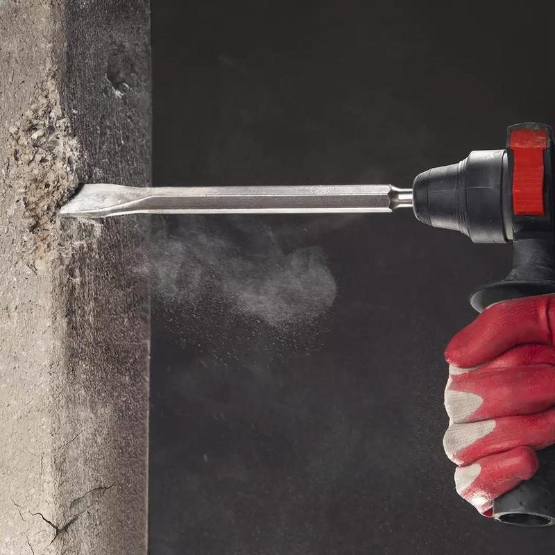 قلم نوک پهن چهار شیار RH-5025 ابزاری ایده آل برای بتن کن ها و چکش های تخریب است و مناسب استفاده در سطوح سخت همانند بتن، کاشی، بلوک و آجر می باشد. این قلم از ساختاری مقاوم و پهن برخوردار بوده و برای کاربری های مختلف تخریب مورد استفاده قرار می گیرد. قلم نوک پهن RH-5025 ساخته شده از فولاد باکیفیت فورج شده و سخت کاری شده در درجه حرارت بالا می باشد که حداکثر مقاومت و دوام را در برابر فشار حاصل از تخریب سطوح بتنی دارد. این نوع قلم تولید شده بر اساس استانداردهای سختی سنجی و مطابق بر اساس تکنولوژی های روز دنیاست و می تواند در عملیات تخریب کاربری آسان و سرعت بالایی را به وجود آورد.