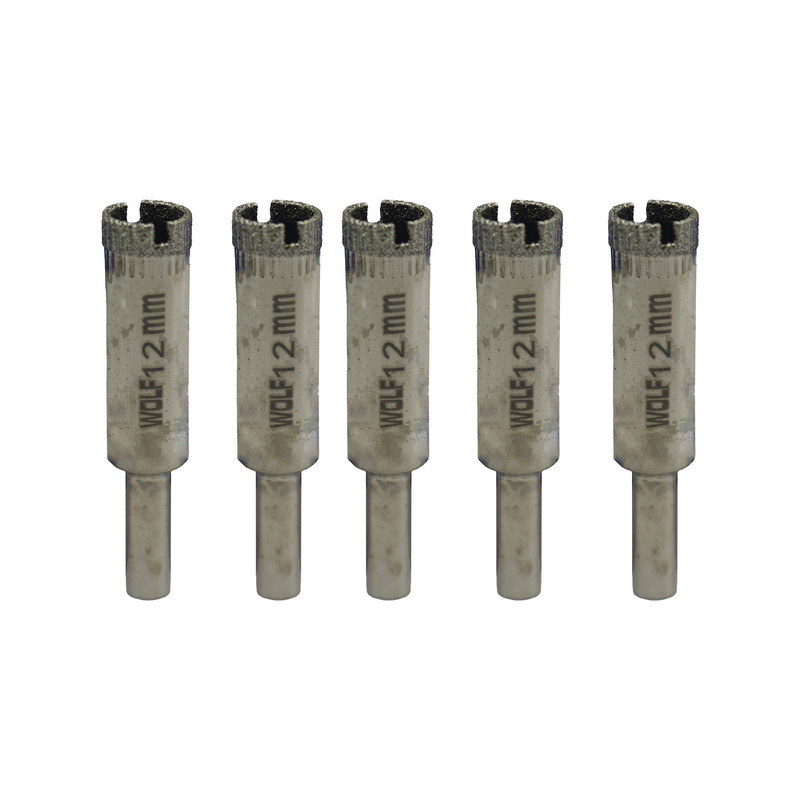 سایر توضیحات - مته گردبر شیشه ولف مجموعه 5 عددی - سایز 12 میلی متر - ساخته شده از بدنه فلزی با آلیاژ فلزات سخت - با لبه های سگمنت حاوی پودر الماس - مناسب جهت استفاده در دریل های سه نظامی - کیفیت بالا