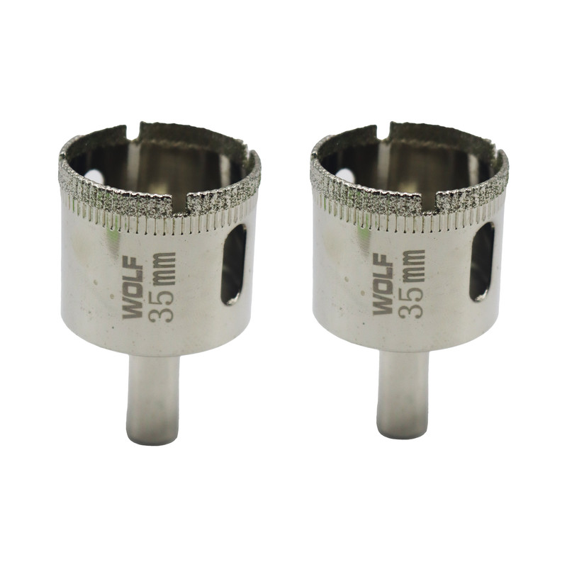 سایر توضیحات - مته گردبر شیشه ولف مجموعه 2 عددی - سایز 35 میلی متر - ساخته شده از بدنه فلزی با آلیاژ فلزات سخت - با لبه های سگمنت حاوی پودر الماس - مناسب جهت استفاده در دریل های سه نظامی - کیفیت بالا