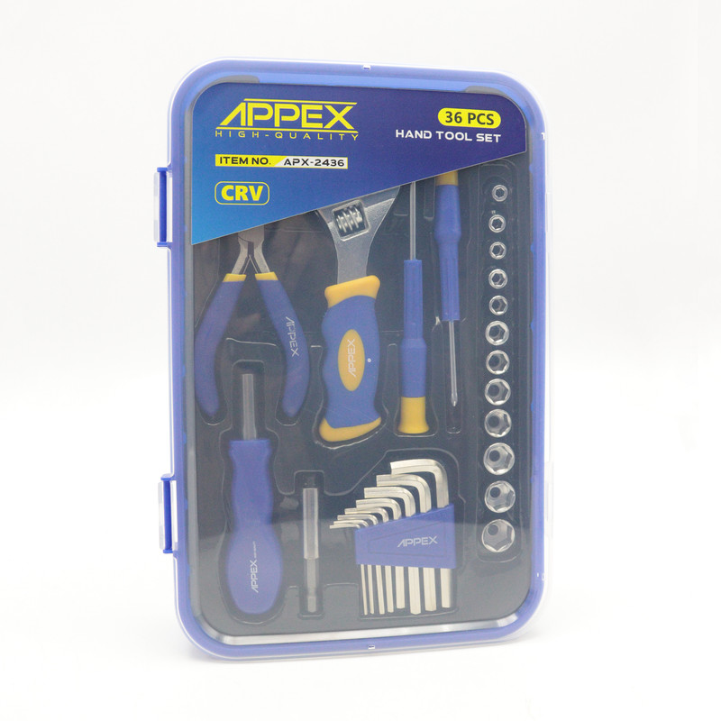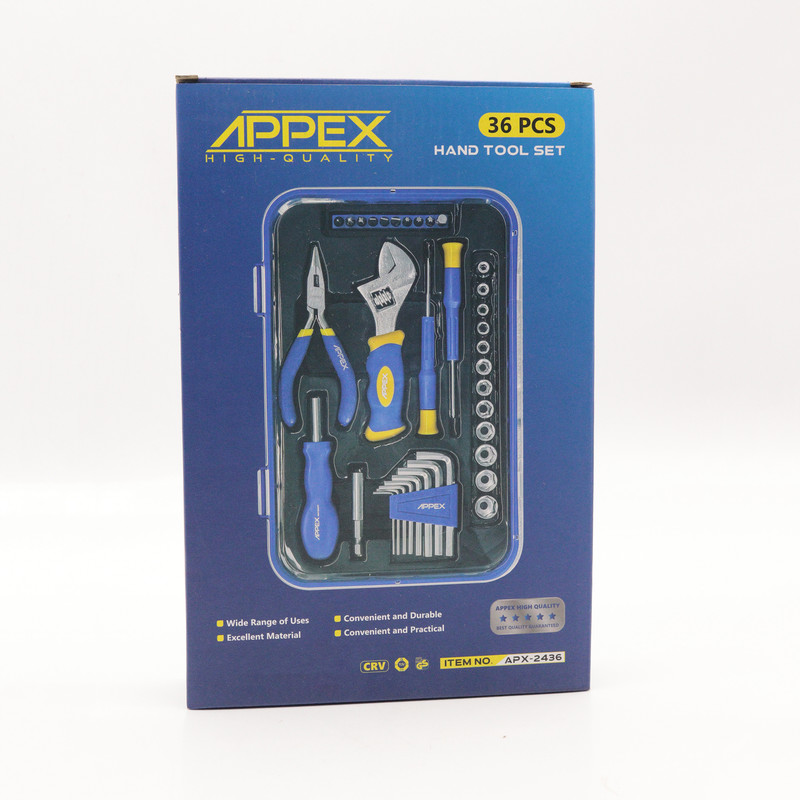 توضیحات تکمیلی مجموعه ابزار | - مجموعه ابزار اپکس مجموعه 36 عددی - دارای عدد 8 عدد آچار الن 1.5 - 2 - 2.5 - 3 - 4 - 5 -5.5 - 6 - دارای 1 آچار فرانسه به طول 14 سانتی متر - دارای 1 انبر دم باریک به طول 13 سانتی متر - دارای 12 عدد سری بکس شش گوش با درایو 1/4 در سایز های 4 - 4.5 - 5 - 5.5 - 6 - 7 - 8 - 9 - 10 - 11 - 12 - 13 میلی متر - دارای 10 عدد سری پیچ گوشتی دو سو - چهار سو - ستاره ای - آلن ... - دارای 2 عدد پیچ گوشتی دو سو و چهار سو - داری 1 رابط بیت خور 6 سانت - دارای 1 عدد رابط پیچ گوشتی - کیفیت بالا |