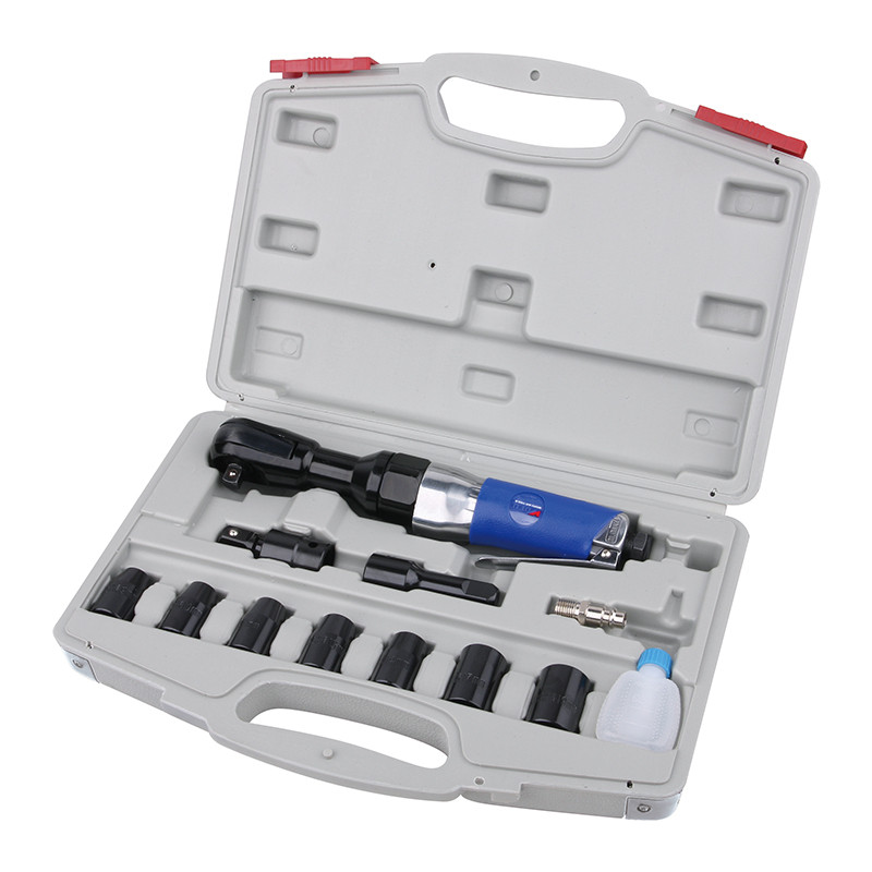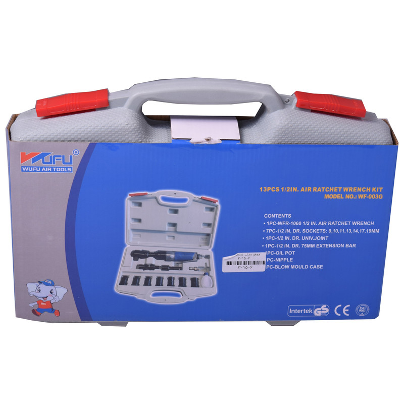 کمپانی ووفو یکی از قدیمی ترین و بهترین سازنده های ابزارآلات بادی در کشور چین به شمار می رود که کار خود را از سال 1979 آغاز نموده است . ظرفیت تولید این کارخانه به بالای 12 میلیون دستگاه در سال می رسد . به دلیل کیفیت ساخت بالا و قیمت مناسب این شرکت توانسته است اکثر محصولات خود را به قاره های آمریکا ، اروپا ؛ آسیا و استرالیا صادر نماید . مجموعه 13 عددی آچار جغجغه ای بادی ووفو مجموعه ای کامل از جغجغه بادی و سری های بکس فشار قوی با درایو 1.2 می باشد تا شما را در برابر هرگونه چالشی موفق سازد . این مجموعه از 7 سری بکس سایز 9 تا 19 ، رابط بکس فشار قوی ، رابط لقلقه ای ، روغن و کوپلینگ تشکیل شده است . بکس بادی جغجغه ای استفاده شده در این مدل از سری heavy duty می باشد که از قدرت بالایی برخوردار است و آن را به گزینه ای مناسب جهت کارهای سنگین و نیمه سنگین صنعتی و همچنین مکانیکی تبدیل نموده است . تنظیم جهت چرخش (راست گرد و چپ گرد ) از طریق دکمه ای که در پشت بکس بادی جغجغه ای وجود دارد قابل انجام است . استفاده از سیستم رطوبت گیر و روغن زن برای کلیه ابزارهای بادی از جمله بکس بادی الزامی بوده و سبب دوام دستگاه و استحکام قطعات در بلند مدت می شود .