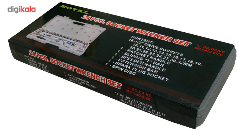 مجموعه 24 عددی آچار بکس شامل سلیزهای: 10-11-12-13-14-15-16-17-18-19-20-21-22-23-24-27-30-32 میلیمتر و دسته آچار بکس از سایز 18-1/2"