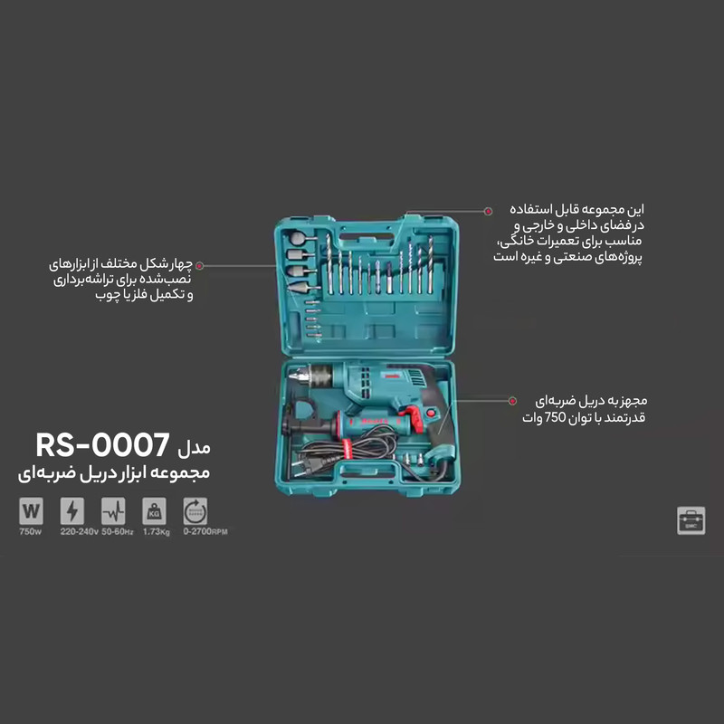 ست ترکیبی دریل برقی 29 پارچه رونیکس مدل RS-0007، برای پاسخ به نیازهای شما طراحی شده و مجموعه کاملی از یک دریل چکشی و انواع سریهای مته رونیکس با سایزهای متفاوت را در یک کیف BMC محکم و مقاوم به ضربه به شما ارائه میدهد.