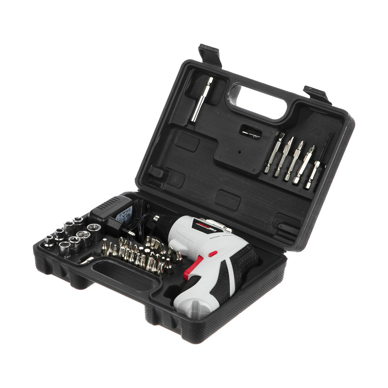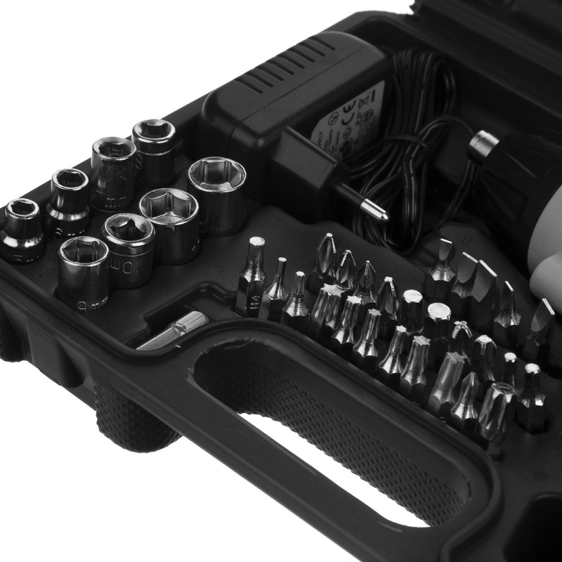 اقلام همراه | - آداپتور شارژ - زمان شارژ 3 تا 5 ساعت - کیف حمل - دارای کلید معکوس - 5 عدد سری پیچگوشتی دوسو با سایزهای 3، 4، 5، 6، 7 - 2 عدد سری بلند پیچگوشتی دوسو با سایزهای 6 و 7 - 6 عدد سری پیچگوشتی ستارهای با سایزهای T10، T15، T25، T27، T30، T40، T20 - 3 عدد سری پیچگوشتی چهارسو خاردار با سایزهای PZ2، PZ1، PZ0 - 3 عدد سری بلند پیچگوشتی چهارسو خاردار با سایزهای PZ2، PZ1 - 4عدد سری پیچگوشتی چهارسو با سایزهای PH0، PH1، PH2، PH3 - 2 عدد سری بلند پیچگوشتی چهارسو با سایزهای PH1، PH2 - 6 عدد سری آلن با سایزهای H5 ، H4، H3.5 ، H2، H2.5 ، H2، H6 - 8 عدد سری بکس با سایز 5mm، 6mm، 7mm، 8mm، 9mm،10mm، 11mm، 12mm - 2 عدد مته HSS2MM، HSS3MM - 1 عدد سری بکس - 1 عدد سری پیچگوشتی شش پر - 1 عدد رابط |