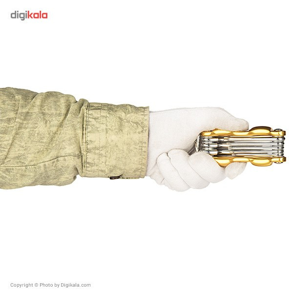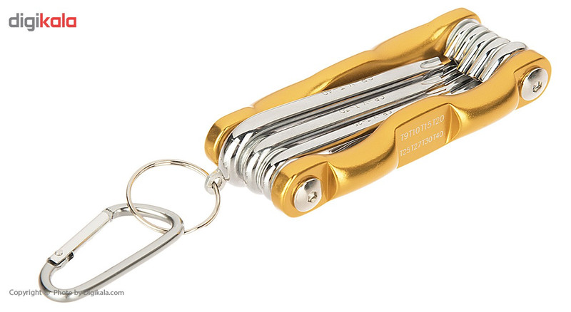 | سایر توضیحات | - دارای 8 آچار ستارهای تاشو در سایزهای T9 , T10 , T15 , T20 , T25 , T27 , T30 , T40 - دارای استحکام بالا و آبکاری مناسب - ابعاد در حالت باز شده: طول: 15.5، عرض: 4.5، ضخامت: 1.7 سانتیمتر - ابعاد در حالت جمع شده: طول: 10.5، عرض: 4.5، ضخامت: 1.7 سانتیمتر - دارای حلقه و قفل کارابین |