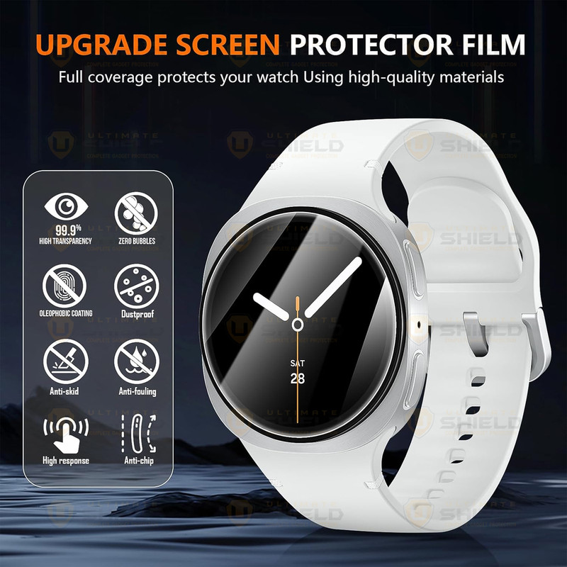محافظ صفحه نمایش شیشه‌ای آلتیمیت شیلد، محصولی فوق‌العاده نازک و مقاوم است که از صفحه نمایش ساعت شما در برابر خط و خش‌های روزمره محافظت می‌کند. این محافظ با طراحی دقیق و شفافیت بالا، هیچ تأثیری بر وضوح و کیفیت صفحه نمایش ندارد و حتی به راحتی می‌توانید از صفحه لمسی ساعت بدون هیچ گونه مشکلی استفاده کنید. برخلاف بسیاری از محافظ‌ها، این محصول بسیار نازک است و هیچ اضافه‌ای به ضخامت ساعت اضافه نمی‌کند. علاوه بر این، با خاصیت ضد اثر انگشت، همیشه صفحه نمایش شما تمیز و شفاف می‌ماند. نصب این محافظ بسیار ساده است و به راحتی بدون ایجاد حباب و یا مشکل نصب می‌شود. در نهایت، این محافظ شیشه‌ای با دوام بالا، به‌خوبی از ساعت شما در برابر آسیب‌های روزانه، ضربه و فشارهای غیرمنتظره محافظت می‌کند.