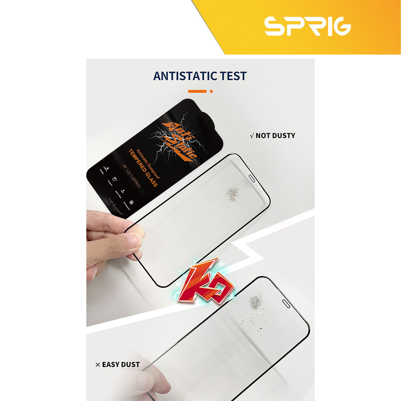 گلس آنتی استاتیک برند اسپریگ یک محافظ صفحه نمایش باکیفیت و با دوام است. خاصیت آنتی استاتیک سبب می‌شود گرد و خاک جذب گلس نشود و به همین دلیل هم این گلس نصب خیلی راحتی دارد و دور تا دور گلس چارچوبی از آلیاژ آلومینیومی قرار گرفته است که به آن مقاومت بسیار بالایی می‌دهد. همچنین این چارچوب از ترک خوردن و خرد شدن لبه‌ها نیز جلوگیری می‌کند. بعلاوه این محافظ دارای سختی 9H است و مقاومت بسیار مناسبی در برابر خط و خش و مشکلاتی از این قبیل دارد دچار آسیب نمی‌شود. گلس آنتی استاتیک اسپریگ هیچ اختلالی در حساسیت لمسی گوشی ایجاد نمی‌کند و مانند قبل به راحتی می‌توانید با گوشی خود کار کنید. سطح این گلس چربی گریز و آب گریز است. در نتیجه قطرات آب، لکه‌های چربی و آلودگی یا اثر انگشت روی آن جا نمی‌اندازند و ردشان باقی نمی‌ماند و همواره صفحه‌ای تمیز خواهید داشت که کاملا شفاف است ولی نور را بازتاب نمی‌کند. کیفیت نمایشگر را کاملا حفظ می‌کند و هیچ قسمتی از جزئیات را از دست نمی‌دهید. جنس خود گلس از شیشه حرارت دیده است. این نوع شیشه طی عملیات حرارتی مخصوص قرار گرفته و مانند شیشه معمولی ترد و شکننده نیست.