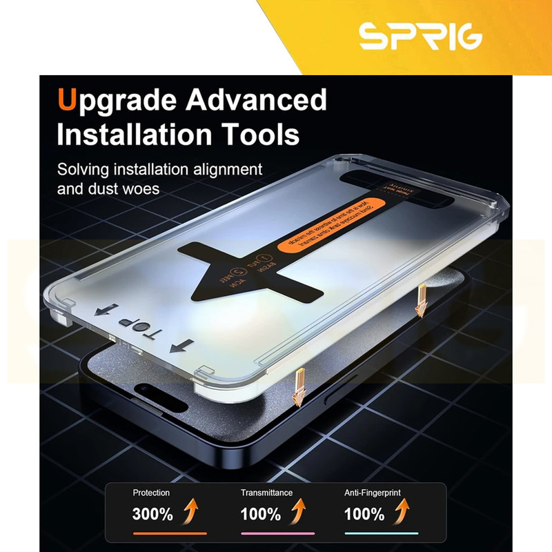 محافظ صفحه نمایش حریم شخصی شیشه‌ای SPRIG با طراحی منحصر به‌فرد و نوار هدایتگر، نصب آسان و دقیق را تنها در چند ثانیه ممکن می‌سازد. ابتدا صفحه گوشی را با دستمال و برچسب ضد گرد و غبار کاملاً تمیز کنید. سپس گلس را روی صفحه قرار دهید به‌ طوری‌ که قاب پلاستیکی دقیقاً روی گوشی بنشیند. حالا طبق راهنمای روی نوار، مرحله به مرحله فشار دهید، بکشید سپس جدا کنید تا گلس به‌طور کامل و بدون حباب روی نمایشگر بنشیند. در نهایت نوار را از قسمت Tear it apart جدا کرده و از محافظتی بی‌نقص لذت ببرید.