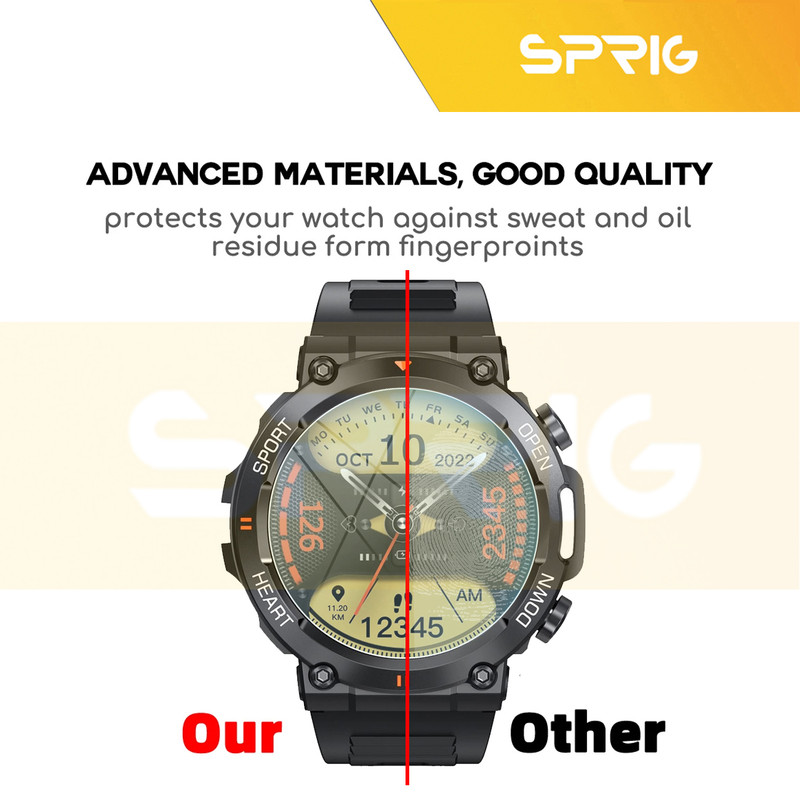 محافظ صفحه نمایش اسپریگ دارای مزایایی مانند ضد خط و خش ، نیفتادن حباب روی صفحه نمایش ، ضد باکتری و جرم و نامرئی بودن آن است. این نوع محافظ صفحه ضخامت بسیار کمی دارد بنابراین ظاهر ساعت شما را چندان تغییر نمی دهد.نصب این نوع محافظ صفحه نیاز به دقت دارد.