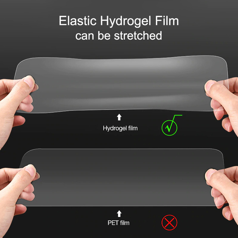 هیدروژل در واقع جدیدترین نوع محافظ صفحه برای گوشی های هوشمند با صفحه خمیده می باشد. این نوع محافظ صفحه با حفظ تمام خصوصیات گلس به صورت خیلی نازک به بازار عرضه شده که این سبب می شود بتوان آنرا به راحتی نصب کرد. همچنین به علت استفاده از مواد پلی کربنات کامل نشکن می باشند. این محصول تنها محصول موجود در بازار می باشد که سنسور اثر انگشت بدون هیچ مشکلی قابل استفاده می باشد. در بسته بندی این محصول محافظ جلو و پشت گوشی موجود می باشد.