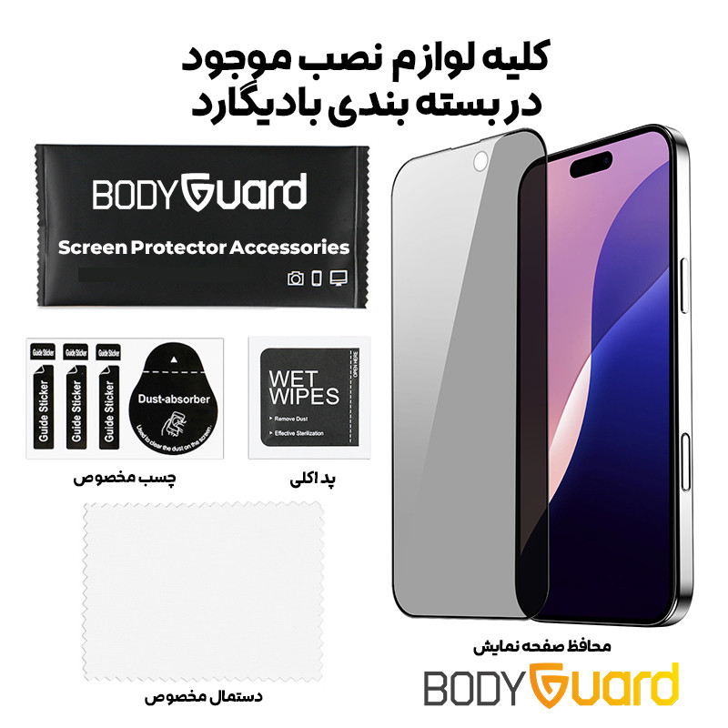 گلس پرایوسی بادیگارد برای iPhone 16 همان سپر نامرئی است که حریم خصوصی و امنیت را در یک قاب ظریف ترکیب میکند. این محافظ با فناوری میکرو‑لَوِر، زاویه دید نمایشگر را به حدود 30 درجه محدود میکند؛ یعنی در مترو، کافه یا جلسه، فقط خودتان تصویر را واضح میبینید و اطرافیان جز صفحهای تیره چیز دیگری نمیبینند. شیشه حرارت‑دیده 9H آن در برابر خطوخش کلید، سکه و حتی سقوطهای ناگهانی مقاوم است، در حالی که ضخامت تنها 0.33 میلیمتریاش حساسیت لمسی و وضوح 120 هرتزی نمایشگر را دستنخورده نگه میدارد. پوشش اولئوفوبیک نسل جدید بادیگارد لکههای چربی و اثر انگشت را دفع میکند تا همیشه تصویری شفاف داشته باشید و تمیز کردن صفحه تنها با یک دستمال میکروفایبر کافی باشد. نصب بدون حباب به لطف کیت راهنمای دقیق، تجربهای سریع و بیدردسر ارائه میدهد و با طراحی لبههای خمیده، کاملاً با قابهای استاندارد سازگار است. اگر برای آیفون پرچمدار خود بهدنبال ترکیبی از حریم خصوصی، دوام و زیبایی هستید، گلس پرایوسی بادیگارد انتخابی مطمئن و حرفهای است.