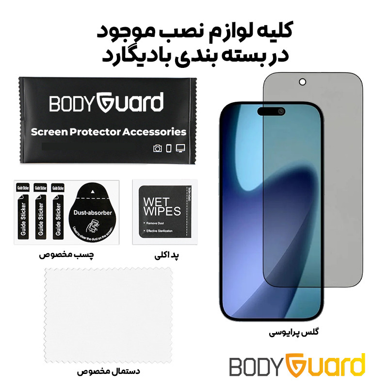 گلس پرایوسی بادیگارد برای iPhone 17 Air همان سپر نامرئی است که حریم خصوصی و امنیت را در یک قاب ظریف ترکیب میکند. این محافظ با فناوری میکرو‑لَوِر، زاویه دید نمایشگر را به حدود 30 درجه محدود میکند؛ یعنی در مترو، کافه یا جلسه، فقط خودتان تصویر را واضح میبینید و اطرافیان جز صفحهای تیره چیز دیگری نمیبینند. شیشه حرارت‑دیده 9H آن در برابر خطوخش کلید، سکه و حتی سقوطهای ناگهانی مقاوم است، در حالی که ضخامت تنها 0.33 میلیمتریاش حساسیت لمسی و وضوح 120 هرتزی نمایشگر را دستنخورده نگه میدارد. پوشش اولئوفوبیک نسل جدید بادیگارد لکههای چربی و اثر انگشت را دفع میکند تا همیشه تصویری شفاف داشته باشید و تمیز کردن صفحه تنها با یک دستمال میکروفایبر کافی باشد. نصب بدون حباب به لطف کیت راهنمای دقیق، تجربهای سریع و بیدردسر ارائه میدهد و با طراحی لبههای خمیده، کاملاً با قابهای استاندارد سازگار است. اگر برای آیفون پرچمدار خود بهدنبال ترکیبی از حریم خصوصی، دوام و زیبایی هستید، گلس پرایوسی بادیگارد انتخابی مطمئن و حرفهای است.