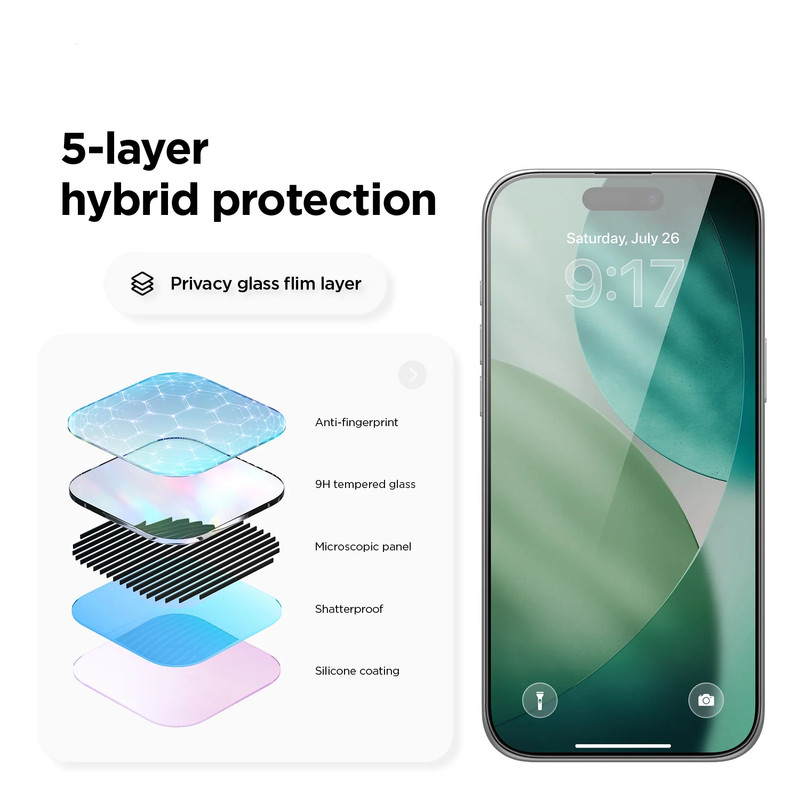 گلس پرایوسی بادیگارد برای iPhone 17 Pro Max همان سپر نامرئی است که حریم خصوصی و امنیت را در یک قاب ظریف ترکیب میکند. این محافظ با فناوری میکرو‑لَوِر، زاویه دید نمایشگر را به حدود 30 درجه محدود میکند؛ یعنی در مترو، کافه یا جلسه، فقط خودتان تصویر را واضح میبینید و اطرافیان جز صفحهای تیره چیز دیگری نمیبینند. شیشه حرارت‑دیده 9H آن در برابر خطوخش کلید، سکه و حتی سقوطهای ناگهانی مقاوم است، در حالی که ضخامت تنها 0.33 میلیمتریاش حساسیت لمسی و وضوح 120 هرتزی نمایشگر را دستنخورده نگه میدارد. پوشش اولئوفوبیک نسل جدید بادیگارد لکههای چربی و اثر انگشت را دفع میکند تا همیشه تصویری شفاف داشته باشید و تمیز کردن صفحه تنها با یک دستمال میکروفایبر کافی باشد. نصب بدون حباب به لطف کیت راهنمای دقیق، تجربهای سریع و بیدردسر ارائه میدهد و با طراحی لبههای خمیده، کاملاً با قابهای استاندارد سازگار است. اگر برای آیفون پرچمدار خود بهدنبال ترکیبی از حریم خصوصی، دوام و زیبایی هستید، گلس پرایوسی بادیگارد انتخابی مطمئن و حرفهای است.