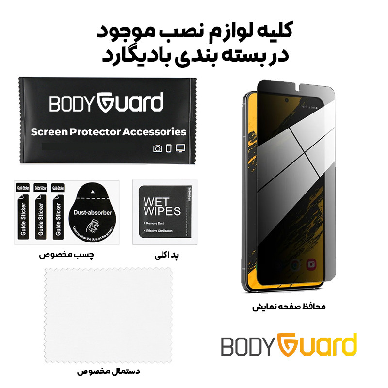 در دنیای امروزی با توجه به شیوه متراکم زندگی حفظ حریم شخصی فردی تبدیل به دغدغه روزمره شده است. می توان ادعا کرد که شخصی ترین وسیله هر کس گوشی موبایل شخص می باشد. سرک کشیدن افراد کنار دستی در گوشی موبایل در مکان های عمومی یا حتی در جمع خانواده یا بین دوستان یکی از آزاردهنده ترین رفتارها می باشد. برای رفع این مشکل شرکت بادیگارد نوعی محافظ صفحه تولید کرده که می تواند حریم خصوصی شما رو به خوبی حفظ کند. گلس پرایوسی یا همان محافظ صفحه حریم شخصی به گونه ای طراحی شده که فقط فردی که مستقیم به صفحه گوشی موبایل نگاه می کند قادر است صفحه نمایش را ببیند و افراد کناری تنها صفحه سیاه رنگ مشاهده می کنند. این گلس علاوه بر خاصیت حفظ حریم شخصی صفحه نمایش گوشی موبایل را در برابر هر گونه ضربه و خط و خش (خشگیر) محافظت می کند.