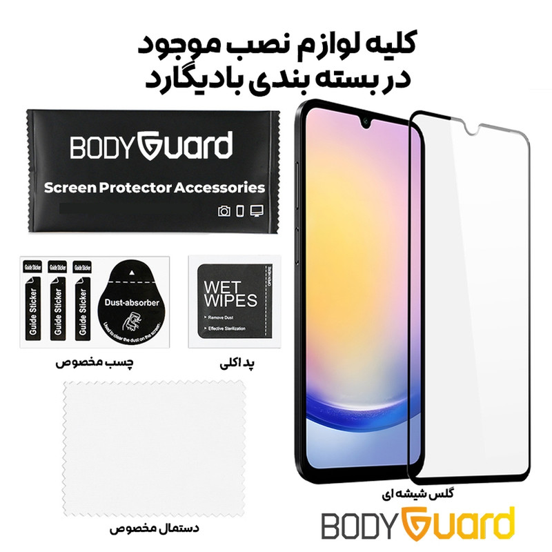 | اقلام همراه | گلس شیشه ای - پد الکلی - چسب پرزگیر - دستمال پارچه ای |