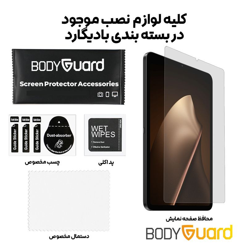 محافظ صفحه نمایش تبلت Xiaomi Pad Mini 8.8 inch / K Pad 8.8 inch از برند بادیگارد با طراحی دقیق و کیفیت ساخت بالا، محافظتی مؤثر و همهجانبه را برای نمایشگر این تبلت فراهم میکند. این گلس با استفاده از مواد مقاوم در برابر خط و خش، از صفحه نمایش در برابر آسیبهای روزمره مانند برخورد با اشیای تیز، ضربههای سطحی و گردوغبار محافظت میکند. شفافیت بالا و ضخامت کم آن باعث میشود وضوح تصویر و حساسیت لمسی تبلت حفظ شود و تجربهای روان و بینقص ارائه دهد. همچنین این محافظ با تکنولوژی ضد حباب تولید شده تا نصب آن بدون دردسر و بدون ایجاد لک یا حباب هوا انجام شود. در بستهبندی رسمی بادیگارد، تمام ابزارهای لازم برای نصب دقیق و آسان از جمله دستمال مخصوص، چسب راهنما، پد الکلی و برچسب جاذب گردوغبار موجود است. این گلس بهطور کامل با صفحهنمایش تبلت Xiaomi Pad Mini 8.8 inch / K Pad 8.8 inch هماهنگ بوده و بدون تداخل با قاب یا کاورهای محافظ، از لبه تا لبه محافظت میکند. انتخابی ایدهآل برای کسانی که همزمان بهدنبال دوام، زیبایی و کارایی هستند.