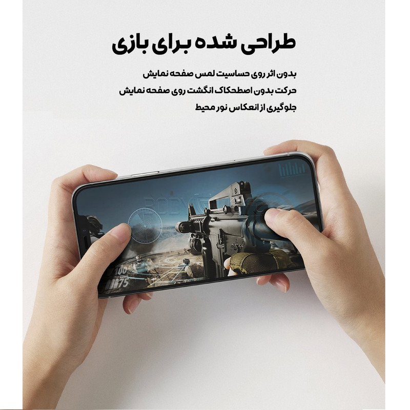 مشخصات دیگرمحافظ تمام صفحه عملکرد بدون نقص سنسور اثر انگشت پشت و رو پوشش مات مخصوص بازی به همراه ویدیو آموزش نصب در بسته بندی مقاوم در برابر ضربه و خط و خش مقاوم در برابر هر گونه خط و خش و اجسام نوک تیز مناسب برای استفاده با تمام قاب ها حساسیت لمس بالا