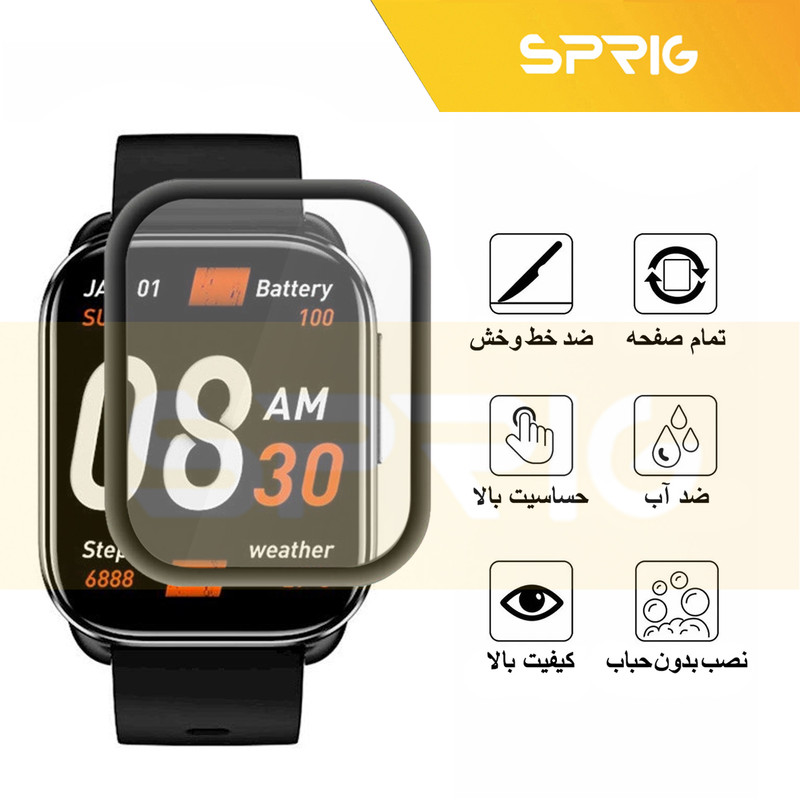 محافظ صفحه نمایش نانو اسپریگ مدل Pmma-SPG دارای مزایایی مانند ضد خط و خش ، نیفتادن حباب روی صفحه نمایش ، ضد باکتری و جرم و نامرئی بودن آن است. این نوع محافظ صفحه ضخامت بسیار کمی نسبت به گلس های شیشه ای دارد بنابراین ظاهر ساعت شما را چندان تغییر نمی دهد. این نوع گلس به دلیل انعطاف پذیری بیشتر ، راحت تر روی گوشی هایی که لبه های منحنی دارند قرار می گیرند ولی نصب این نوع محافظ صفحه نیاز به دقت دارد.