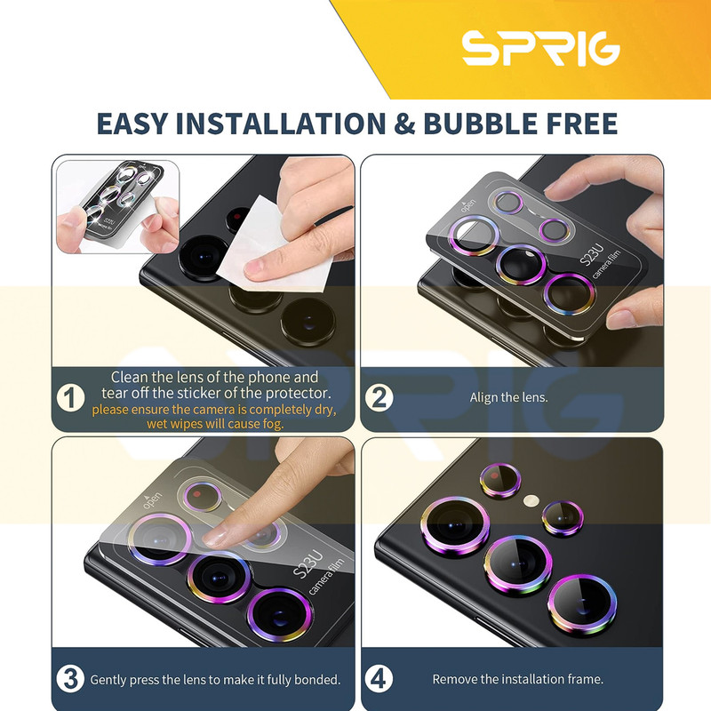 محافظ لنز دوربین رینگی اسپریگ با در نظر گرفتن دو جنبه ی زیبایی و حفاظت، یک محافظ تمام عیار برای لنز دوربین میباشد. این محافظ برای دوربین اصلی طراحی شده است تا آن را از خط و خش، شکستگی و آسیب های احتمالی دیگر حفظ کند و مانع از نشستن هر گونه لک و چربی روی لنز و در نتیجه افت کیفیت دوربین شما می شود. با وجود نصب آسانی که دارد میتوانید به راحتی آن را روی دوربین گوشی خود نصب کنید و نگران ماندن رد این گلس روی دوربین به هنگام جدا کردن آن نباشید چراکه هیچ ردی روی شیشه دوربین برجای نمی گذارد و پس از جدا کردن آن، دوربین مثل روز اولش خواهد بود. در نهایت اینکه این محافظ لنز تاثیری روی لنز دوربین و کیفیت تصاویر یا فیلم های ثبت شده ندارد و می توانید با خیال راحت از آن استفاده کنید.