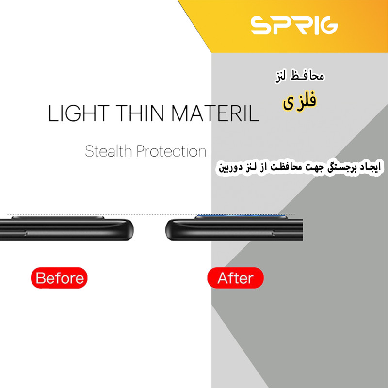 با توجه به پیشرفت تکنولوژی گوشی های موبایل هوشمند، می توان گفت یکی از مهم ترین قسمت های آن، لنز دوربین است که برای بسیاری از کاربران اهمیت بالایی دارد. دروبین هایی که امروزه برای گوشی ها طراحی و ساخته می شوند با کیفیت ولی ظریف هستند و همین امر آن ها را آسیب پذیر می کند و قرار دادن آن ها در جیب شلوار، درون کیف و... ممکن است باعث آسیب رساندن به لنز شود. محافظ لنز فلزی دوربین اسپریگ به خوبی از آسیب رسیدن به لنز گوشی شما محافظت می کند و آن را ایمن نگه می دارد. جنس فلزی این محافظ لنز مقاومت آن را بالا می برد و در نتیجه باعث محافظت بهتر از دوربین می شود. نحوه عملکرد آن به گونه ای است که از ضربه خوردن مستقیم به خود دوربین، خط و خش و یا شکستگی آن جلوگیری می کند. این محافظ لنز دورتا دور لنز دوربین را پوشش می دهد ولی روی قسمتی که با آن به ثبت تصاویر و ویدئوها می پردازید پوششی وجود نداشته تا کیفیت دوربین را حفظ کند و بر آنچه ثبت می کنید، تأثیر منفی نگذارد.
