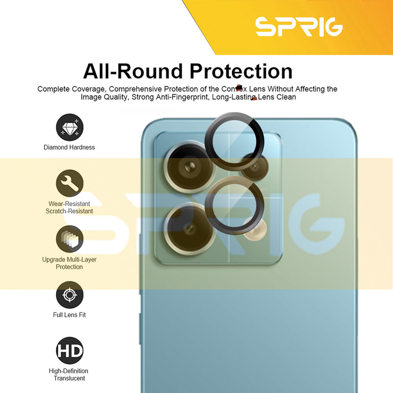 محافظ لنز دوربین رینگی اسپریگ با در نظر گرفتن دو جنبه ی زیبایی و حفاظت، یک محافظ تمام عیار برای لنز دوربین میباشد. این محافظ برای دوربین اصلی طراحی شده است تا آن را از خط و خش، شکستگی و آسیب های احتمالی دیگر حفظ کند و مانع از نشستن هر گونه لک و چربی روی لنز و در نتیجه افت کیفیت دوربین شما شود. با وجود نصب آسانی که دارد میتوانید به راحتی آن را روی دوربین گوشی خود نصب کنید و نگران ماندن رد این گلس روی دوربین به هنگام جدا کردن آن نباشید چراکه هیچ ردی روی شیشه دوربین برجای نمی گذارد و پس از جدا کردن آن، دوربین مثل روز اولش خواهد بود. در نهایت اینکه این محافظ لنز تاثیری روی لنز دوربین و کیفیت تصاویر یا فیلم های ثبت شده ندارد و می توانید با خیال راحت از آن استفاده کنید.