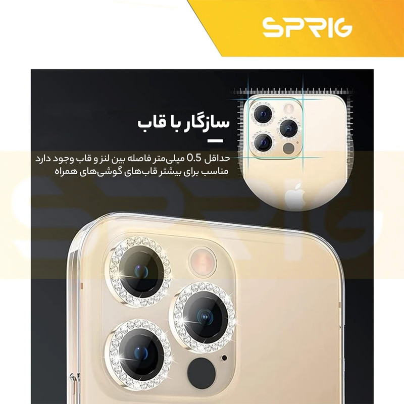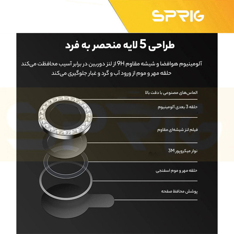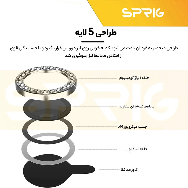 محافظ لنز دوربین رینگی اسپریگ با در نظر گرفتن دو جنبه ی زیبایی و حفاظت، یک محافظ تمام عیار برای لنز دوربین میباشد. این محافظ برای دوربین اصلی طراحی شده است تا آن را از خط و خش، شکستگی و آسیب های احتمالی دیگر حفظ کند و مانع از نشستن هر گونه لک و چربی روی لنز و در نتیجه افت کیفیت دوربین شما می شود. با وجود نصب آسانی که دارد میتوانید به راحتی آن را روی دوربین گوشی خود نصب کنید و نگران ماندن رد این گلس روی دوربین به هنگام جدا کردن آن نباشید چراکه هیچ ردی روی شیشه دوربین برجای نمی گذارد و پس از جدا کردن آن، دوربین مثل روز اولش خواهد بود. در نهایت اینکه این محافظ لنز تاثیری روی لنز دوربین و کیفیت تصاویر یا فیلم های ثبت شده ندارد و می توانید با خیال راحت از آن استفاده کنید.