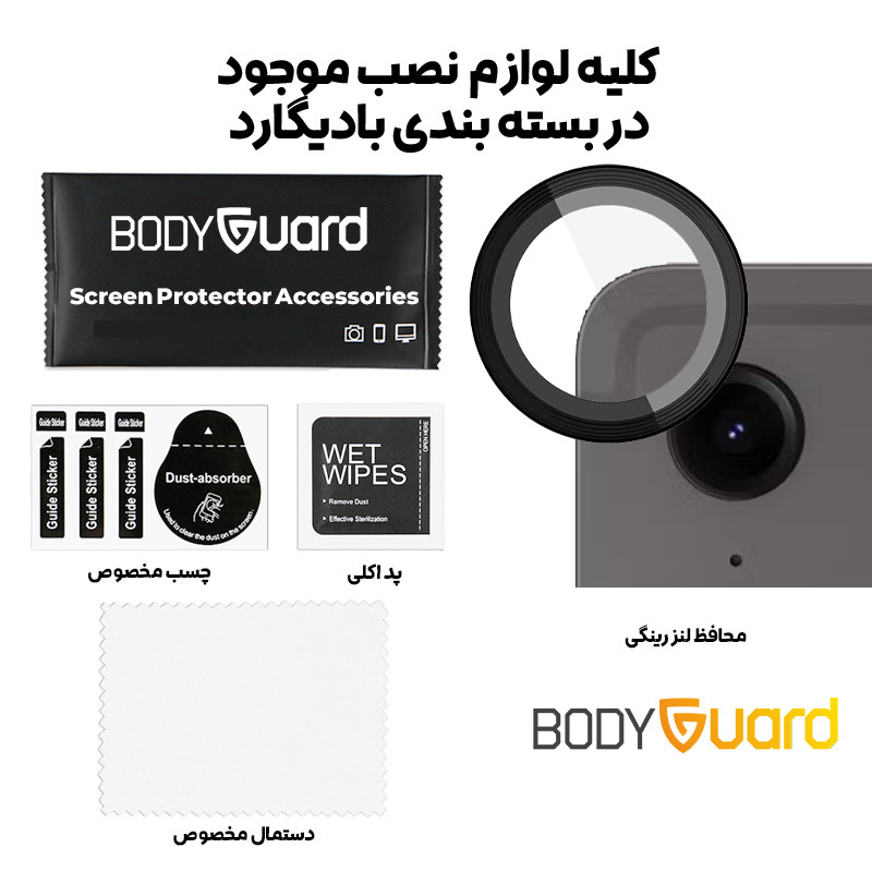 این روزها با توجه به بزرگتر شدن ابعاد دوربین تلفن های همراه بحث حفاظت از لنز دوربین به دغدغه کاربران گوشی ها تبدیل شده است. شرکت بادیگارد با کمک سابقه درخشان و تجربه خود در محافظت از صفحه نمایش تلفن های همراه اقدام به تولید محافظ مخصوص لنز گوشی موبایل با قابلیت نصب آسان کرده است. طراحی این محصول به گونه ایست که به راحتی توسط هر فردی قابل نصب می باشد.