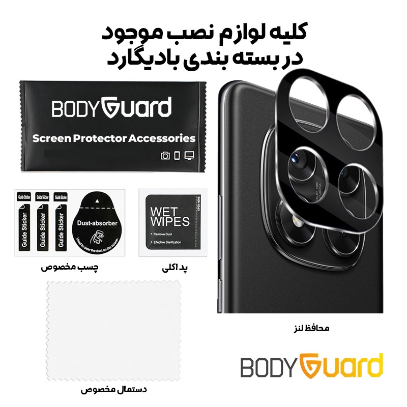 این روزها با توجه به بزرگتر شدن ابعاد دوربین تلفن های همراه بحث حفاظت از لنز دوربین به دغدغه کاربران گوشی ها تبدیل شده است. شرکت بادیگارد با کمک سابقه درخشان و تجربه خود در محافظت از صفحه نمایش تلفن های همراه اقدام به تولید محافظ مخصوص لنز گوشی موبایل با قابلیت نصب آسان کرده است. طراحی این محصول به گونه ایست که به راحتی توسط هر فردی قابل نصب می باشد.