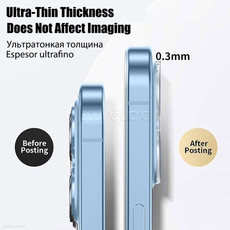 امروزه با توجه به بزرگ شدن ابعاد دوربین تلفن همراه و در نظر گرفتن اینکه جنس دوربین ها از شیشه می باشد بحث حفاظت از لنز تلفن همراه به دغدغه تولید کنندگان محافظ تلفن همراه تبدیل شده است. در گذشته برای محافظت از دوربین تلفن همراه قطعات کوچکی از گلس تنها برای پوشش لنز استفاده می شد. ولی با توجه به اینکه فضای اطراف لنز هم معمولا از شیشه ساخته می شود شرکت بادیگارد دست به تولید محافظ دوربین فول زده تا علاوه بر محافظت از خود لنز، فضای اطراف لنز را هم محافظت کند. نصب این نوع گلس بسیار ساده می باشد و نیاز به هیچگونه تجربه قبلی نمی باشد.