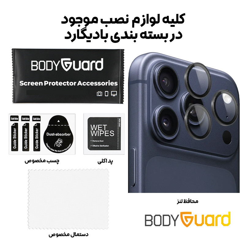 محافظ لنز بادیگارد مدل رینگی برای گوشی iPhone 17 Pro Max با طراحی دقیق و کیفیتی مثالزدنی، یکی از ضروریترین لوازم جانبی برای حفظ سلامت و کارایی دوربین این پرچمدار اپل محسوب میشود. این محافظ با استفاده از شیشه حرارتدیده با سختی 9H ساخته شده و در برابر خطوخش، ضربه و آسیبهای روزمره مقاومت بالایی دارد. وجود حلقه مشکی اطراف لنزها باعث جلوگیری از نشت نور و بازتابهای ناخواسته میشود تا تصاویر ثبتشده شفافتر و با جزئیات دقیقتری به نمایش درآیند. طراحی باریک و دقیق این محصول، کاملاً با برآمدگی لنزها هماهنگ بوده و بدون ایجاد فاصله اضافی بهصورت یکپارچه روی دوربین قرار میگیرد. همچنین پوشش ضداثرانگشت و لایه سیلیکونی آن مانع از لک و کثیف شدن سطح محافظ میشود. این مدل بادیگارد علاوهبر مقاومت بالا، با انواع قابهای محافظ نیز سازگاری کامل دارد و از نظر نصب نیز بسیار آسان است؛ چرا که تمامی لوازم جانبی موردنیاز مانند دستمال مخصوص، پد الکلی و چسبهای راهنما در بستهبندی قرار داده شدهاند. اگر بهدنبال ترکیبی از زیبایی، دوام و کارایی برای حفاظت از دوربین iPhone 17 Pro Max هستید، محافظ لنز رینگی بادیگارد بهترین انتخاب خواهد بود.