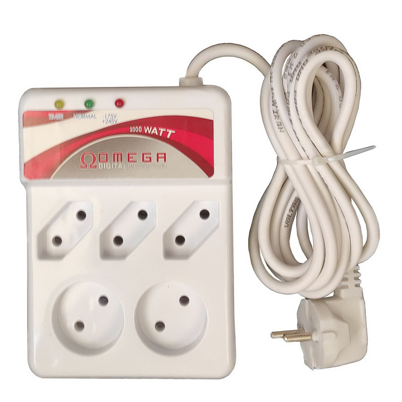 نوسان ولتاژ جریان برق نسبت به مقادیر تعیین شده برای دستگاهها و وسایل برقی بسیار خطرناک است. این تغییر ناگهانی میتواند خسارات جبرانناپذیری به لوازم برقی استفاده کنندگان وارد کند. برای مقابله با این تغییر ولتاژ باید از محافظهای برق استفاده کرد. این محافظها انواع مختلفی دارند و با توجه به دستگاهی که قرار است محافظت شود انتخاب میشوند. محافظها عموما دارای سه حالت برای نمایش ولتاژ عادی، زمان تاخیر و ولتاژ غیرعادی هستند. روش کار این دستگاهها به این شکل است که پس از اتصال به برق میزان ولتاژ ورودی را اندازه میگیرند. این اندازهگیری اولیه، باعث زمان تاخیر به هنگام شروع به کار دستگاه میشود و معمولا در این حالت چراغ دستگاه به شکل چشمکزن و با رنگ زرد مشخص میشود. پس از اتمام زمان تاخیر درصورتیکه ولتاژ ورودی استاندارد باشد دستگاه جریان برق را متصل میکند که این حالت توسط چراغ سبزرنگ دستگاه قابلمشاهده است. پس از قرار گرفتن دستگاه در این حالت که نمایانگر ولتاژ عادی بوده، وسیلهی برقی متصل به محافظ در حالتی کاملا ایمن شروع به کار میکند و بهمحض افزایش یا کاهش ولتاژ بیشازحد مجاز، جریان بهکلی قطع شده و از آسیب رسیدن به دستگاه جلوگیری میشود. محصولی که در تصویر مشاهده میکنید محافظ برق آنالوگ دو زمانه است. این محصول دارای یک دوشاخه جهت اتصال به برق است و از پنج خروجی برق با ابعاد متفاوت برای اتصال دوشاخه های مختلف برخوردار است. حداکثر جریان انتقالی از این محصول 10 آمپر است. حداکثر و حداقل ولتاژ قطعی جریان برای این محافظ به ترتیب 245 و 175ولت است. محصولات این شرکت تولیدی دارای کنترل کیفیت بوده و کیفیت قابل قبولی دارند.