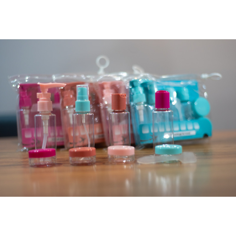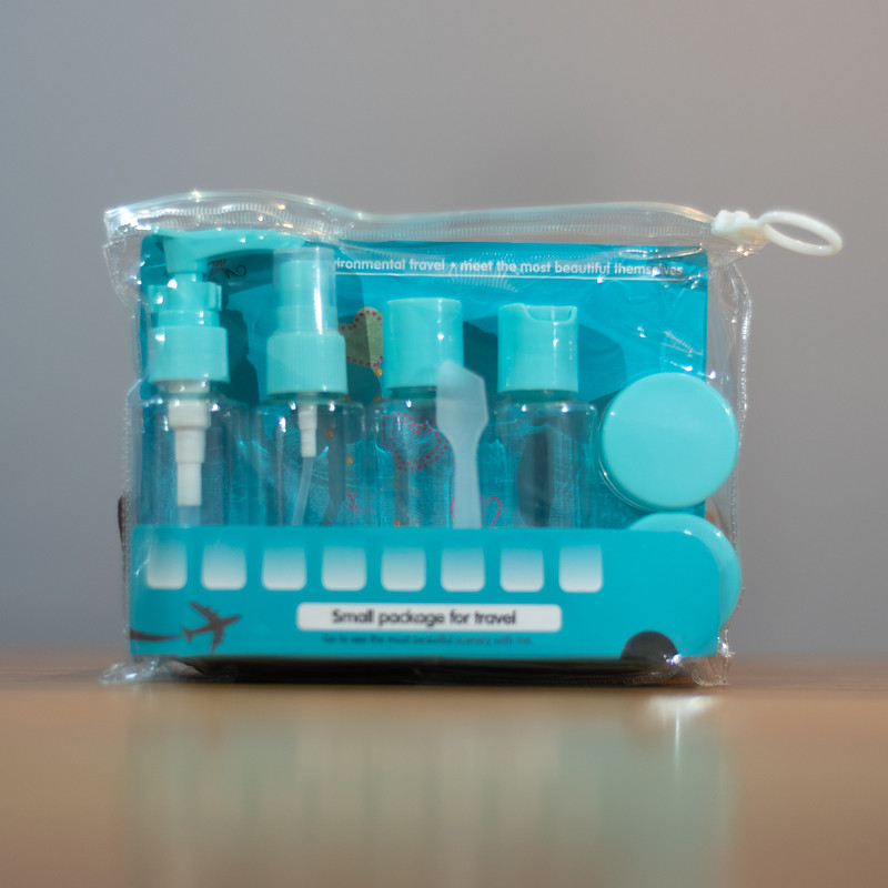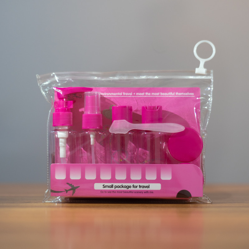 سایر توضیحات این پک 8 تکه‌ای شامل :یک عدد بطری پمپی مناسب محصولاتی مانند لوسیون بدن، ژل و..، یک بطری اسپری مناسب برای عطر،تونر،الکل،فیس میست و...دو عدد بطری در دکمه‌ای مناسب برای شامپو،صابون مایع، نرم کننده های و.. دو عدد ظرف در پیچی مناسب برای کرم های دست، ماسک مو و.. و یک کاردک که برای ریختن کرم و لوسیون ها به داخل بطری ها مورد استفاده قرار میگیرد، که در یک عدد کیف پلاستیکی شفاف با کیفیت زیپ دار برای حمل و نگهداری بطری ها قرار گرفته. اغلب برای همه ی ما پیش آمده که بخواهیم به مسافرت برویم و بخواهیم شامپو،کرم،پاک کننده صورت،الکل برای ضد عفونی کردن وسایل و دست و چیزهایی از این قبیل را همراه داشته باشیم ولی به دلیل حجم زیادی که اشغال می کنند، ترجیح می دهیم که مقداری از آن را در ظرف کوچکی بریزیم. برای این کار نیازمند ظروف تمیز و با کیفیت و در عین حال مقاوم خواهیم بود. پک های مسافرتی بطری های کوچک پلاستیکی این مشکل را حل کرده اند. اندازه ی این بطری ها بسیار مناسب برای داخل کیف و یا حتی جیب است.این بطری ها دارای رنگ های متنوع هستند که میتوانید تنوع رنگ انتخابی خود را در تصاویر ببینید.