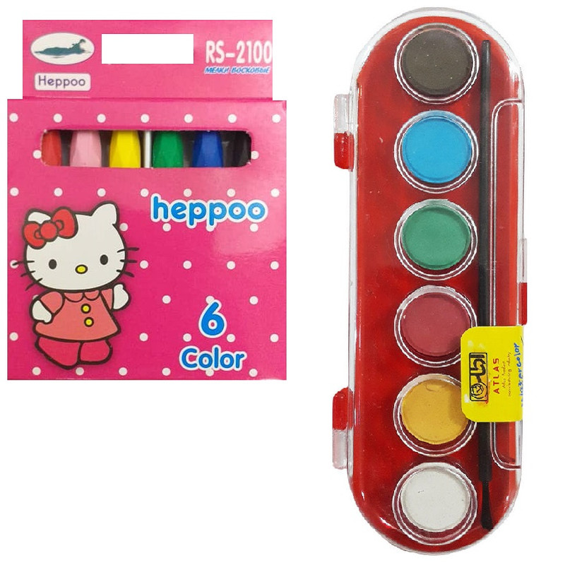 مداد شمعی 6 رنگ مدل کیتی به همراه آبرنگ