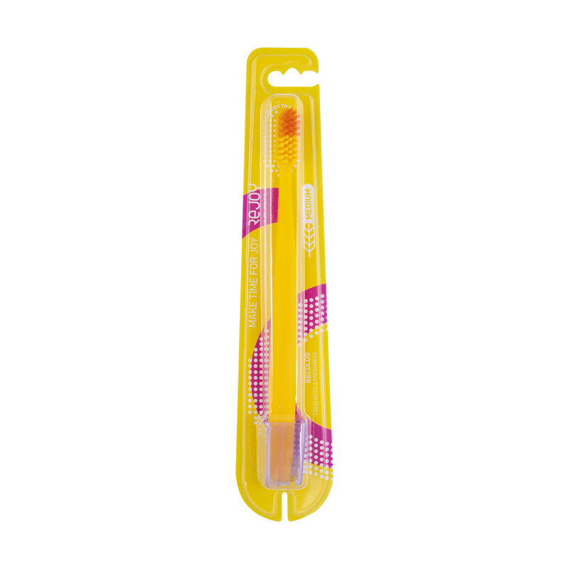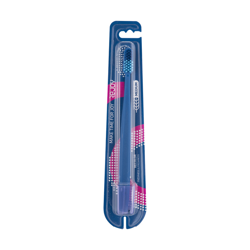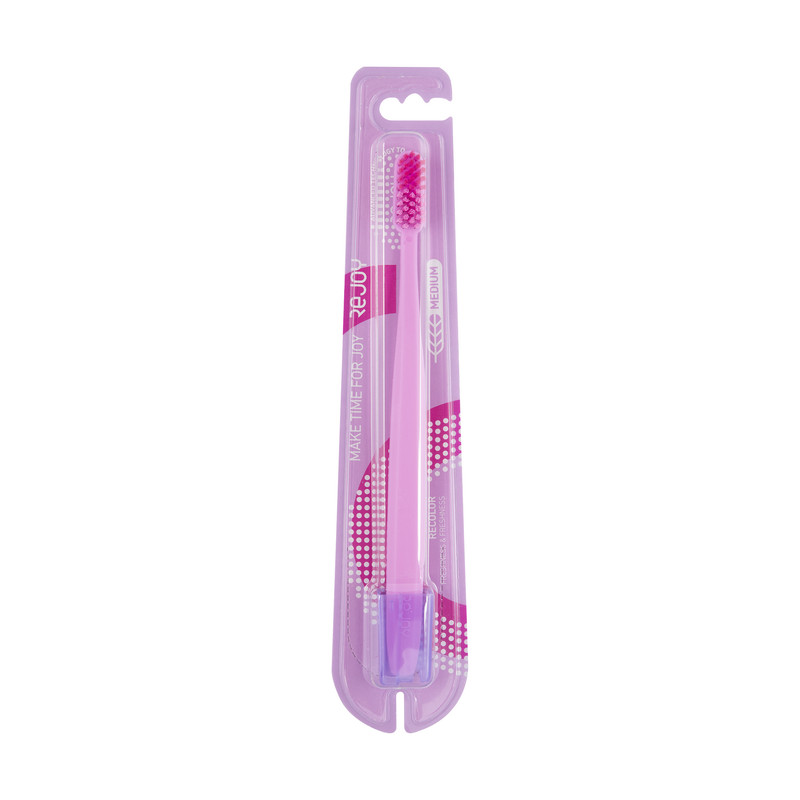 مسواک ری کالر (Recolor) برند ریجوی (Rejoy) یک مسواک ساده نیست بلکه ترکیبی از رنگ بندی خوشحال کننده، فرمی سبک و قابل حمل و استفادهی آسان است. یک مسواک خوب نباید از اندازهی دندانهای شما کوچکتر و یا بزرگتر باشد. سر مسواک ری کالر نه خیلی بزرگ و نه خیلی کوچک است. متناسب بودن سایز سر این مسواک کمک میکند با فرم دهان و اندازهی دندانهای بیشتر افراد مطابقت داشته باشد و مسواک زدن را به کاری ساده و کم زحمت تبدیل کند. علاوه بر این، مهمترین ویژگی این مسواک استفاده از رشتههای منعطف و پایدار است که بهسادگی فرم خود را از دست نمیدهد. طراحی دسته های فاقد لغزش و جنس منعطف و نرم این مسواک، این امکان را فراهم میکند تا در دست گرفتن و کنترل مسواک بسیار امنتر باشد و به لثه آسیب نرساند. این مسواک دارای درپوش شفاف است که حمل آن را آسان و بهداشتی میسازد. رنگ مورد علاقهی خود را از بین 5 رنگ موجود انتخاب کنید و از مسواک زدن لذت ببرید.