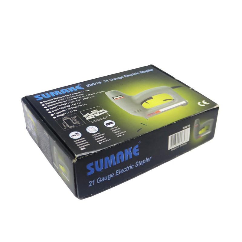 منگنه کوب برقی سوماک یک ابزار ایده آل برای صنایع چوبی و دکوراسیون میباشد. از منگنه کوب برقی سوماک در کابینت سازی، ساخت مبلمان، صنایع ام دی اف و طراحی دکوراسیون استفاده میشود و از کارایی بالایی برخوردار است. این منگنه کوب برقی میتواند سوزن منگنه هایی با ارتفاع 6 الی 16 میلی متر و تاج 1.9 میلی متری را در خشاب 140 عددی خود جای دهد. سرعت پرتاب مناسب این منگنه کوب الکتریکی در افزایش راندمان و سرعت کار شما تاثیر گذار است. رعایت اصول ارگونومی در طراحی بدنه منگنه کوب بادی سوماک موجب راحتی بیشتر اپراتور گشته است به طوری که پس از ساعت ها کار بی وقفه احساس خستگی نمیکند. بدنه آن تماما از فایبر گلس ساخته شده که وزن آن را به شدت کاهش داده است. کیفیت بالای ساخت منگنه کوب برقی سوماک منجر به افزایش رضایت مشتریان در سالهای اخیر گشته است و به راحتی جای خود را در رده منگنه کوب های برقی باز کرده است.