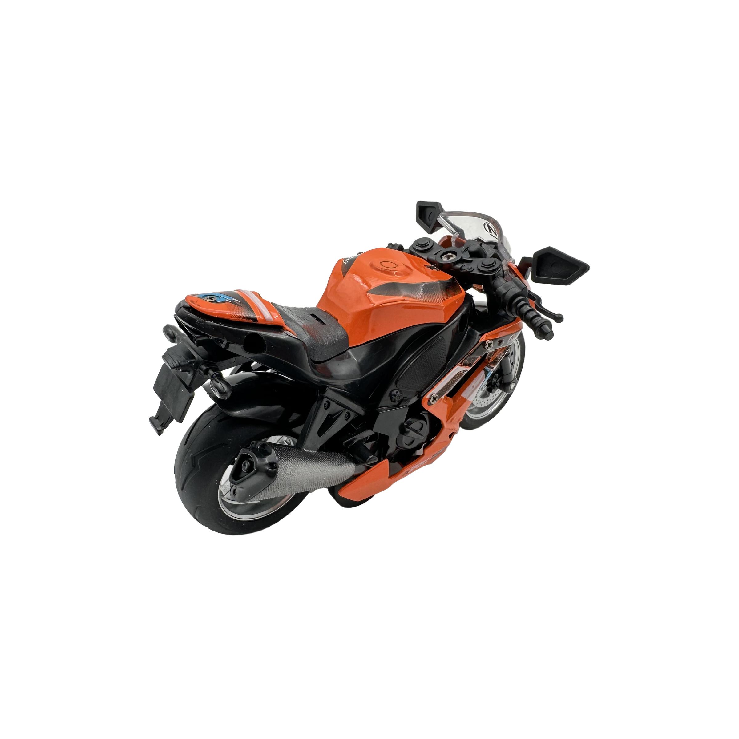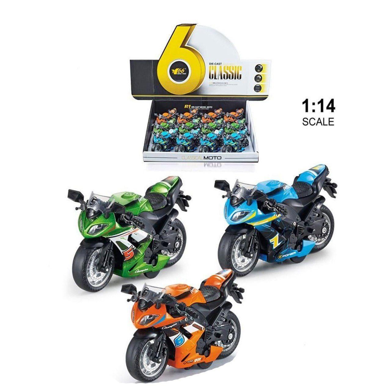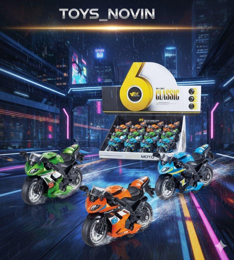 اسباب بازی موتور اسپرت در 3 رنگ مختلف ارائه شده است. این موتور اسباب بازی از جنس فلز بوده و به صورت عقب کش کار می کند. موتور فلزی عقب کش ساخت چین بوده و طول آن 13 سانتی متر است.